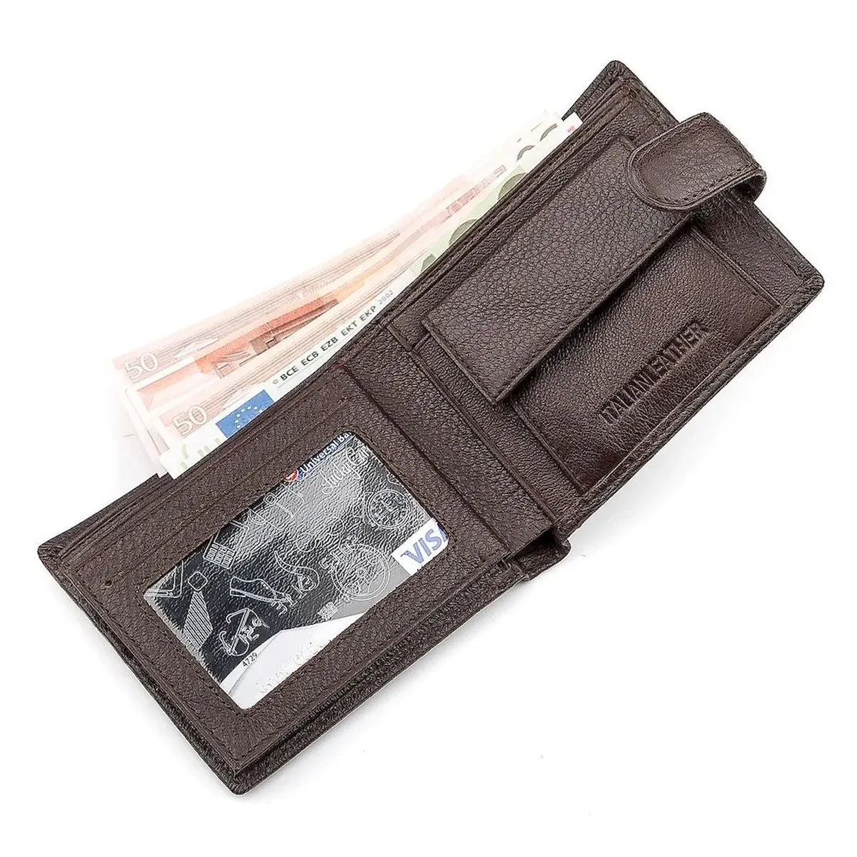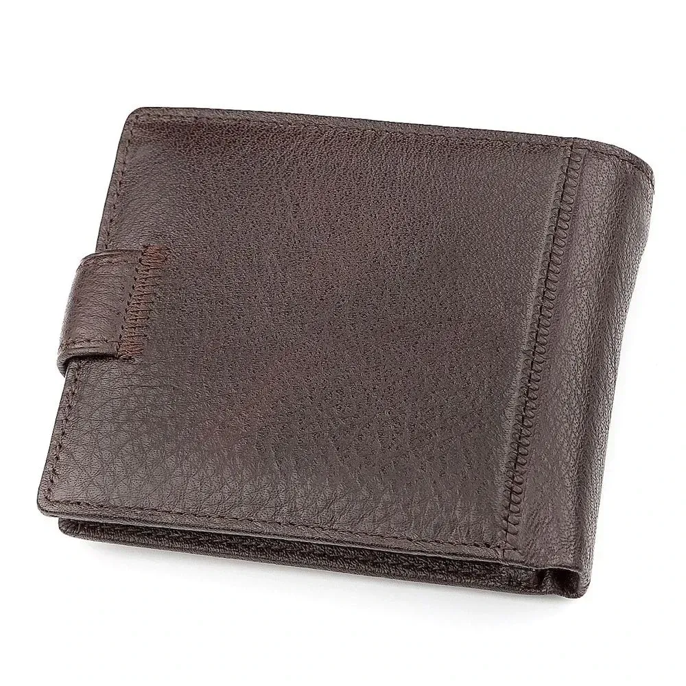 Ця класична модель портмоне для чоловіків має спеціальний внутрішній вкладиш. Гаманець виготовлений з натуральної темно-коричневої яловичої шкіри. Усередині є секція з віконцем для прав чи карти, що відкривається горизонтально. У функціоналі є все необхідне: два стандартні відділення для банкнот та одна на застібці, кілька сегментів для кредиток та монетниця з фіксацією. Для внутрішнього оздоблення використана натуральна свиняча шкіра та високоякісний текстиль.