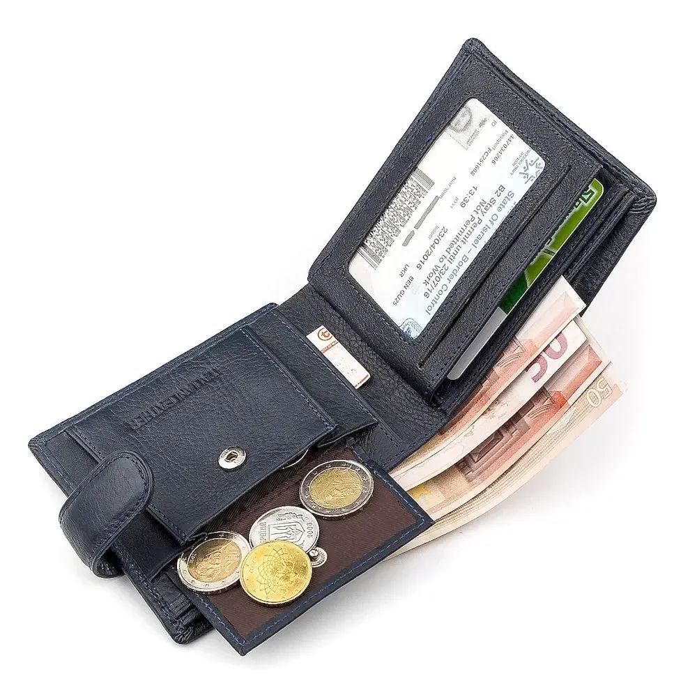Особливості< 3 кишені для банкнот (одне на блискавці); 4 відділення під кредитні картки; 2 прилеглі кишені; 2 відділення з прозорими віконками; 1 відділення для монет на блискавки.