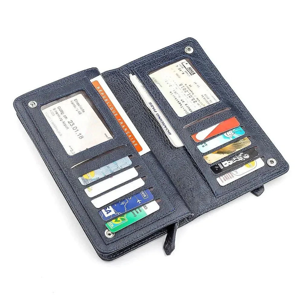 Даний гаманець має великі розміри, але не має громіздкості, не заважаючи і зручно розташовуючись у кишені. Завдяки високій функціональності, аксесуар можна носити як клатч. Для пошиття використовується яловича шкіра, яка доповнюється свинячою, а текстильні підкладки. Дизайн гаманця солідний і тішить яскравим синім кольором. Механізму закривання два: на блискавці та кнопці, яка фіксує окремо винесений блок для платіжних карток. Усередині достатньо місця для комфортного розміщення купюр, щоб вони не загиналися та м'ялися. Відмінний асортимент стильних та якісних аксесуарів представлений у нашому інтернет-магазині, де кожен зможе підібрати собі відмінні вироби на будь-який смак.