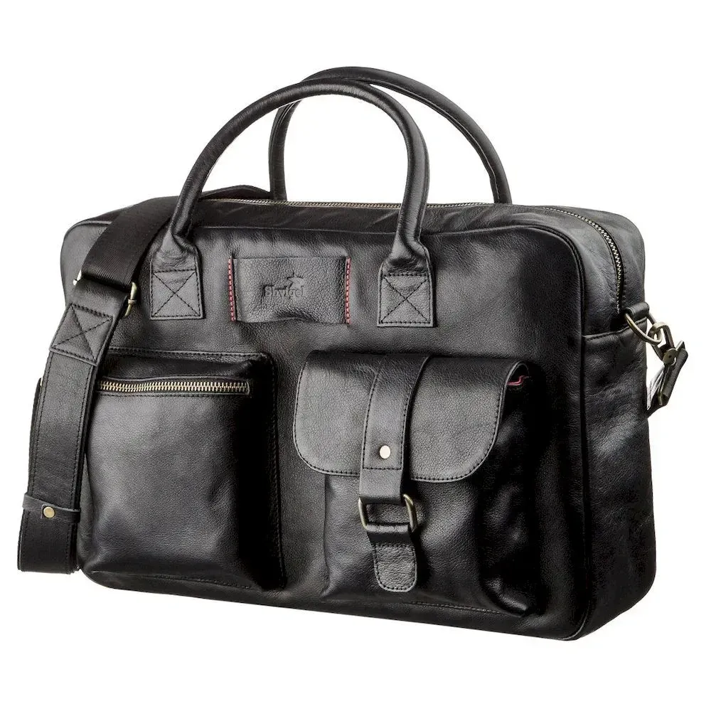 Чоловічий шкіряний портфель для ноутбука SHVIGEL 19118 Чорний