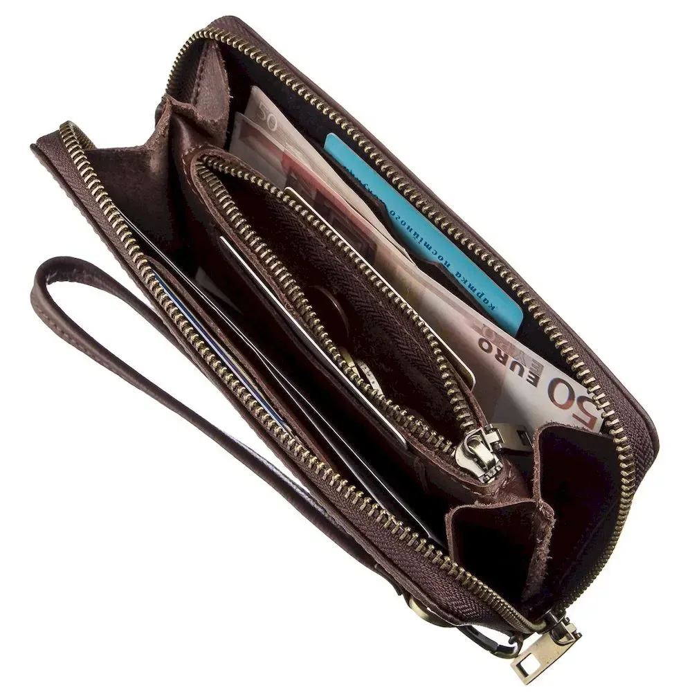 - знімний ремінець на зап'ястя.< /p>Стильний шкіряний клатч з натуральної шкіри найвищої якості. Дизайн клатчу розроблений спеціально з урахуванням усіх побажань чоловіків. Виріб має дві місткі кишені та кишеню на блискавці для монет або банкнот. Клатч досить місткий. Ви можете носити його замість барсетки. Такому аксесуару буде радий будь-який чоловік. На лицьовій стороні аксесуара тиснений логотип бренду.