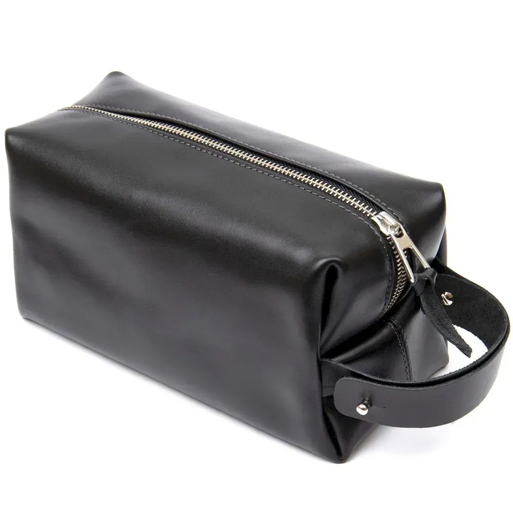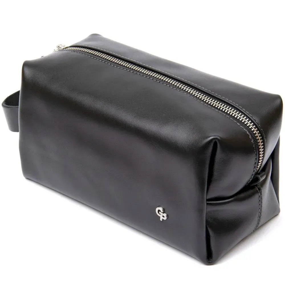 Бренд: GRANDE PELLE. - Закривається на блискавку; - збоку є ручка для перенесення; - фурнітура срібного кольору; Зручна і практична чоловіча косметичка на всі випадки життя, її можна використовувати вдома для зберігання особистих речей, для поїздок, спорту та іншого. Виконано аксесуар із зносостійкої натуральної шкіри високої якості. Колір виробу – чорний, фактура глянсова гладка. Запакований несесер у фірмову сумку-чохол.