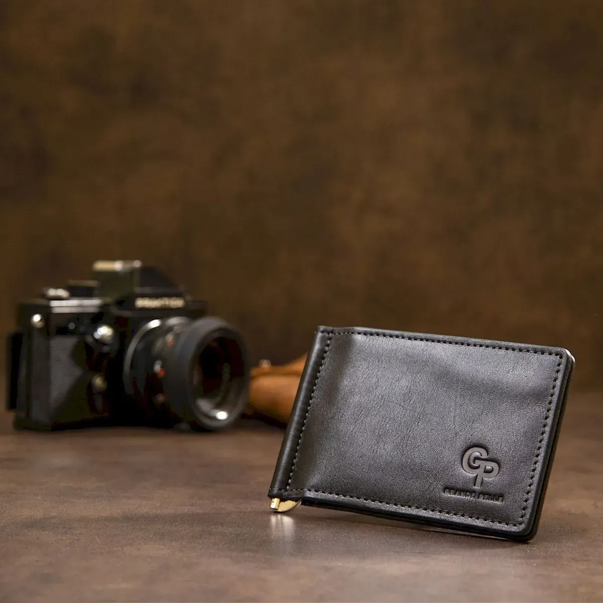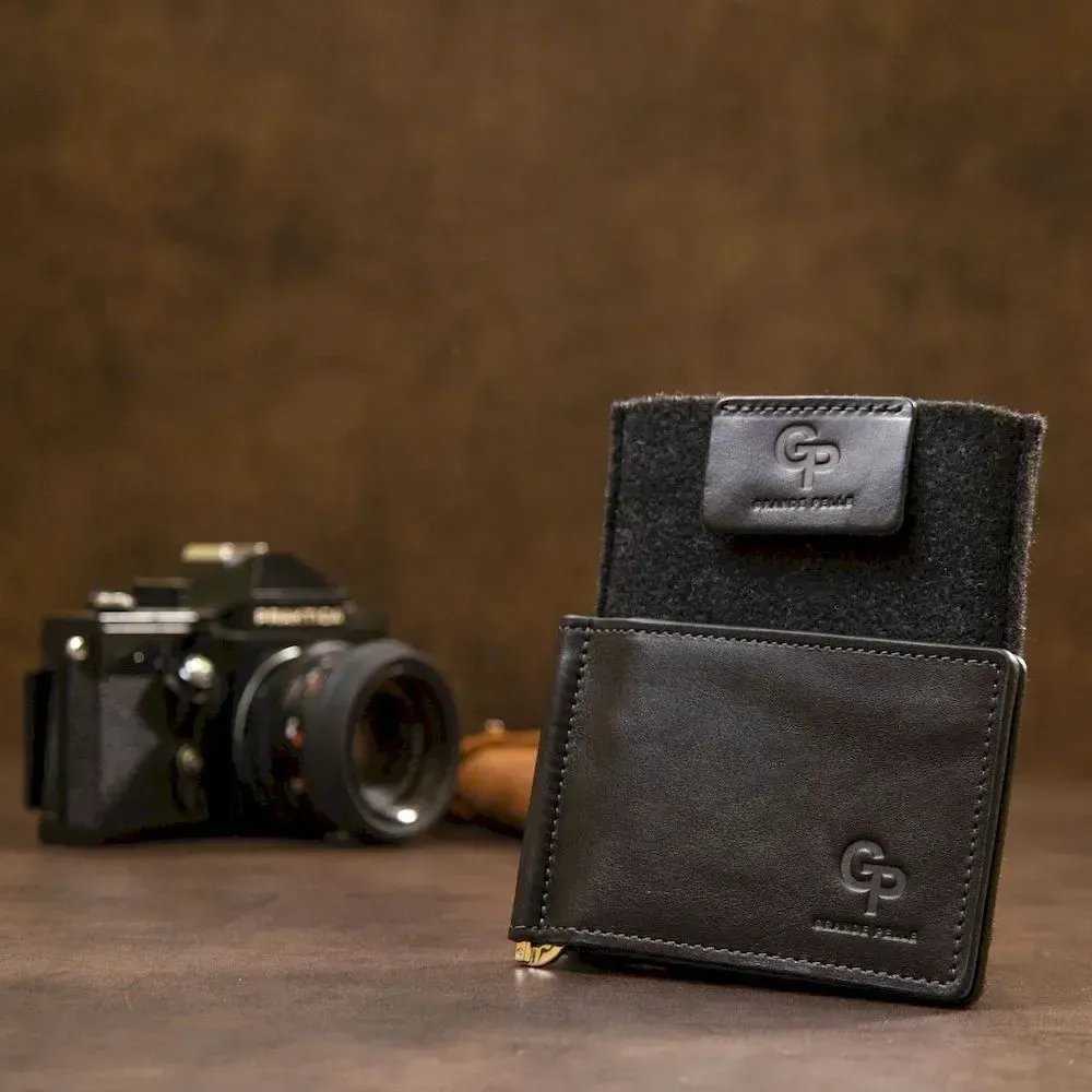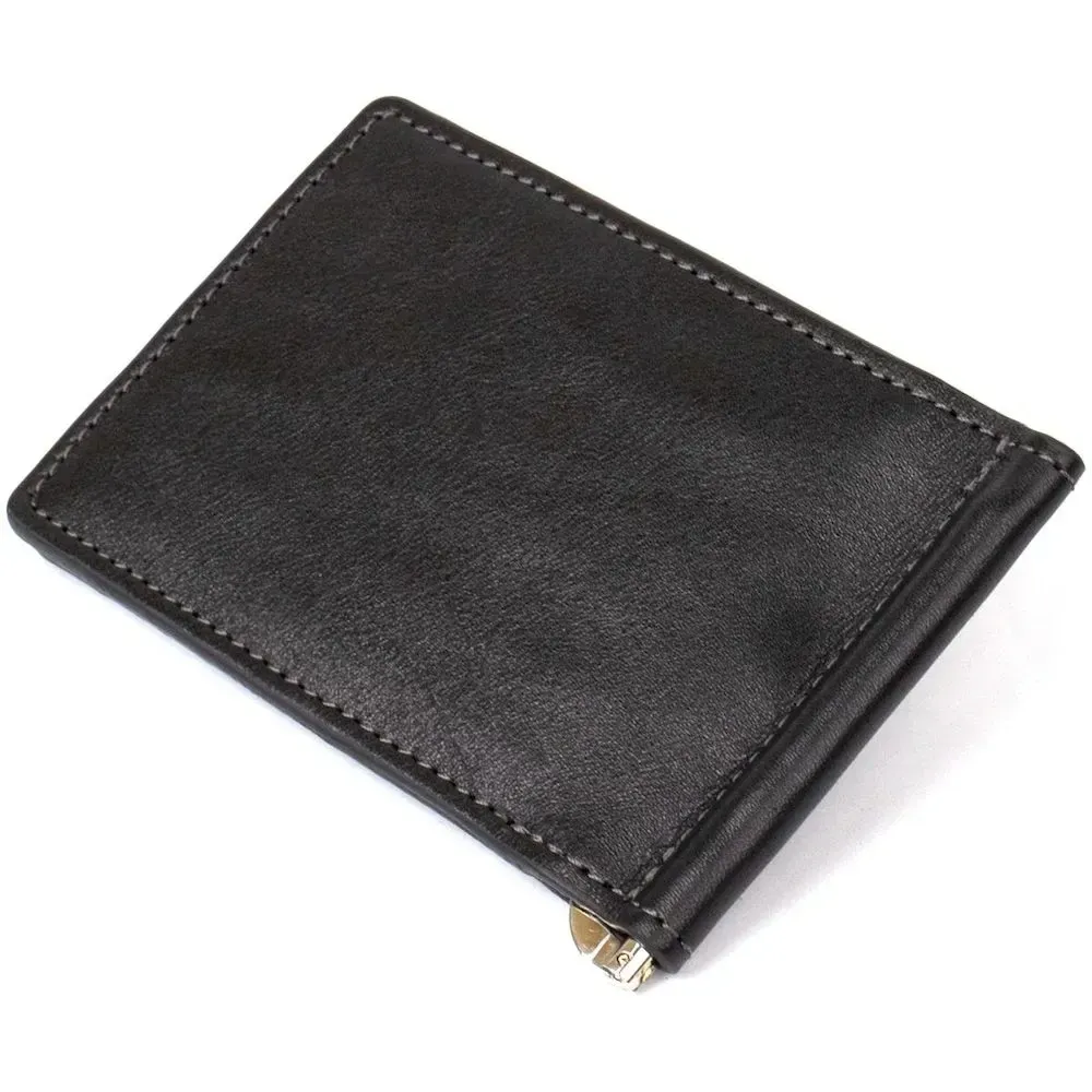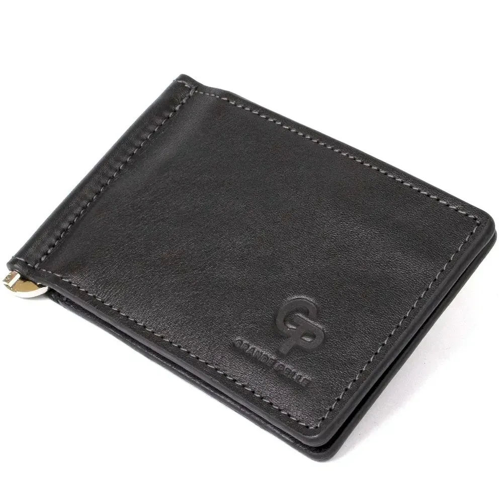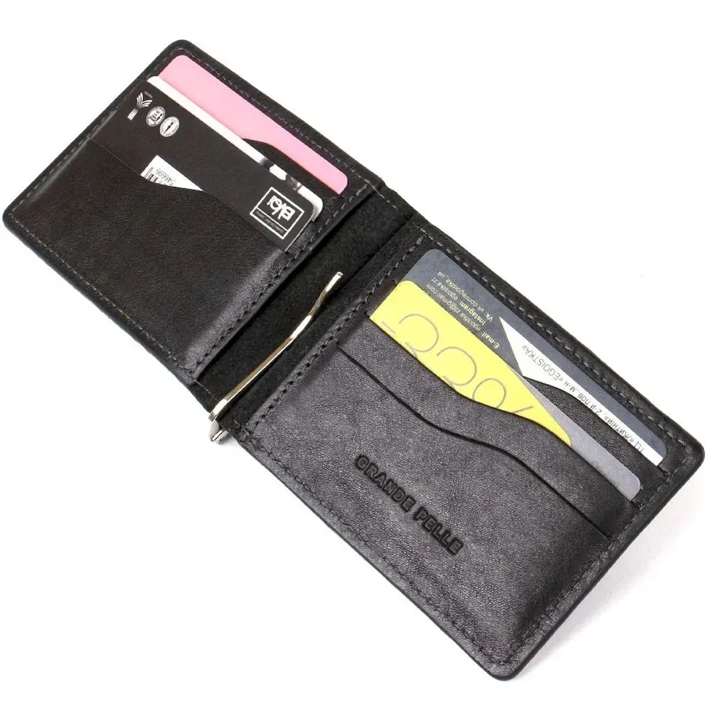 Чоловічий шкіряний затискач для грошей GRANDE PELLE 11475 Чорний