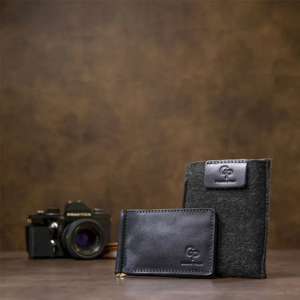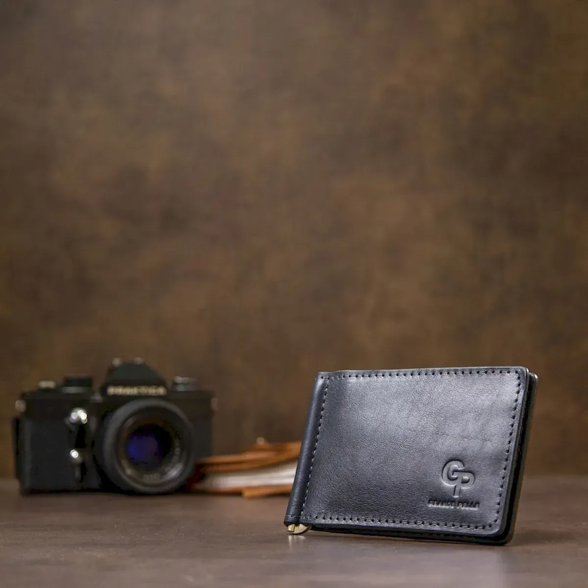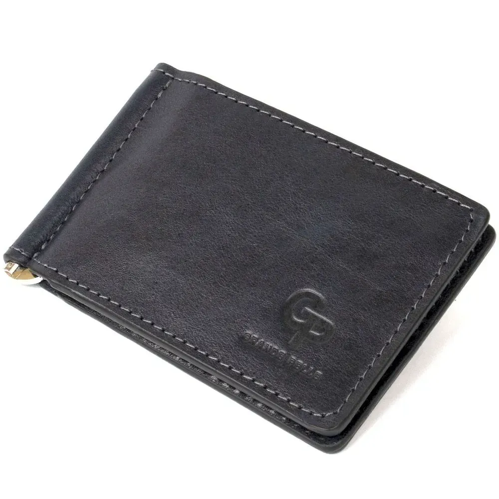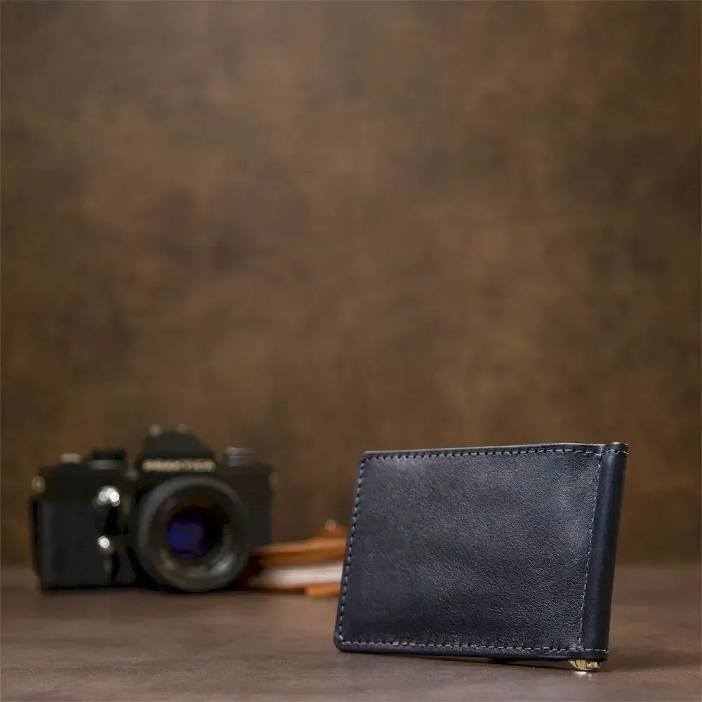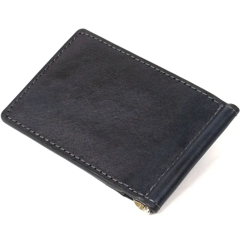Чоловічий шкіряний затискач для грошей GRANDE PELLE 11476 Темно-синій
