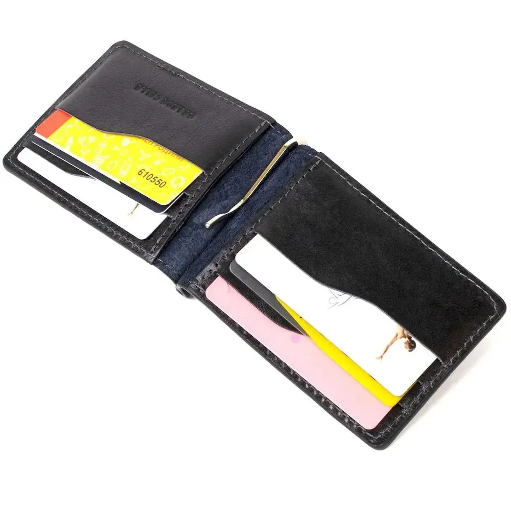 Практичний і стильний чоловічий затискач для шанувальників Коротких негроміздких речей. Виконаний затиск із висококласної натуральної шкіри у глянсовій гладкій фактурі. Усередині виробу розташувалися зручні слоти для карток і сам затискач. Цей аксесуар вже давно став незамінним для багатьох чоловіків, тому поспішайте порадувати себе цією покупкою.