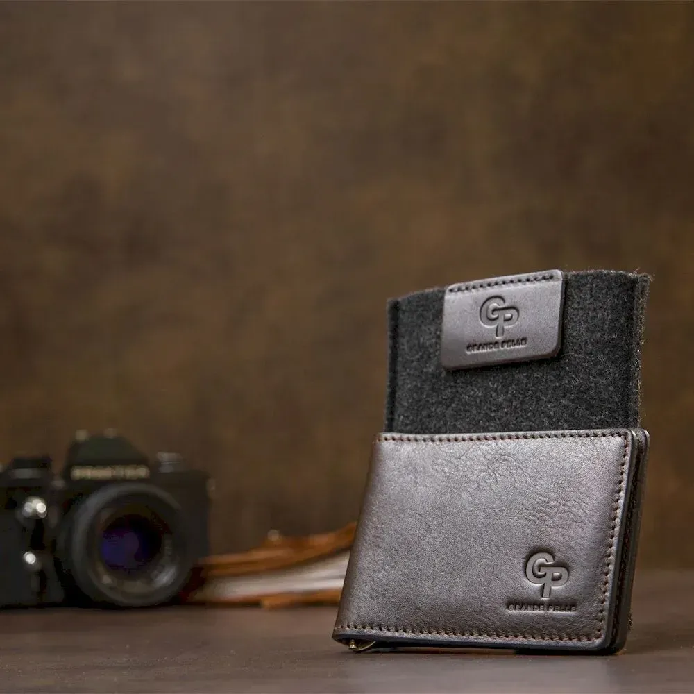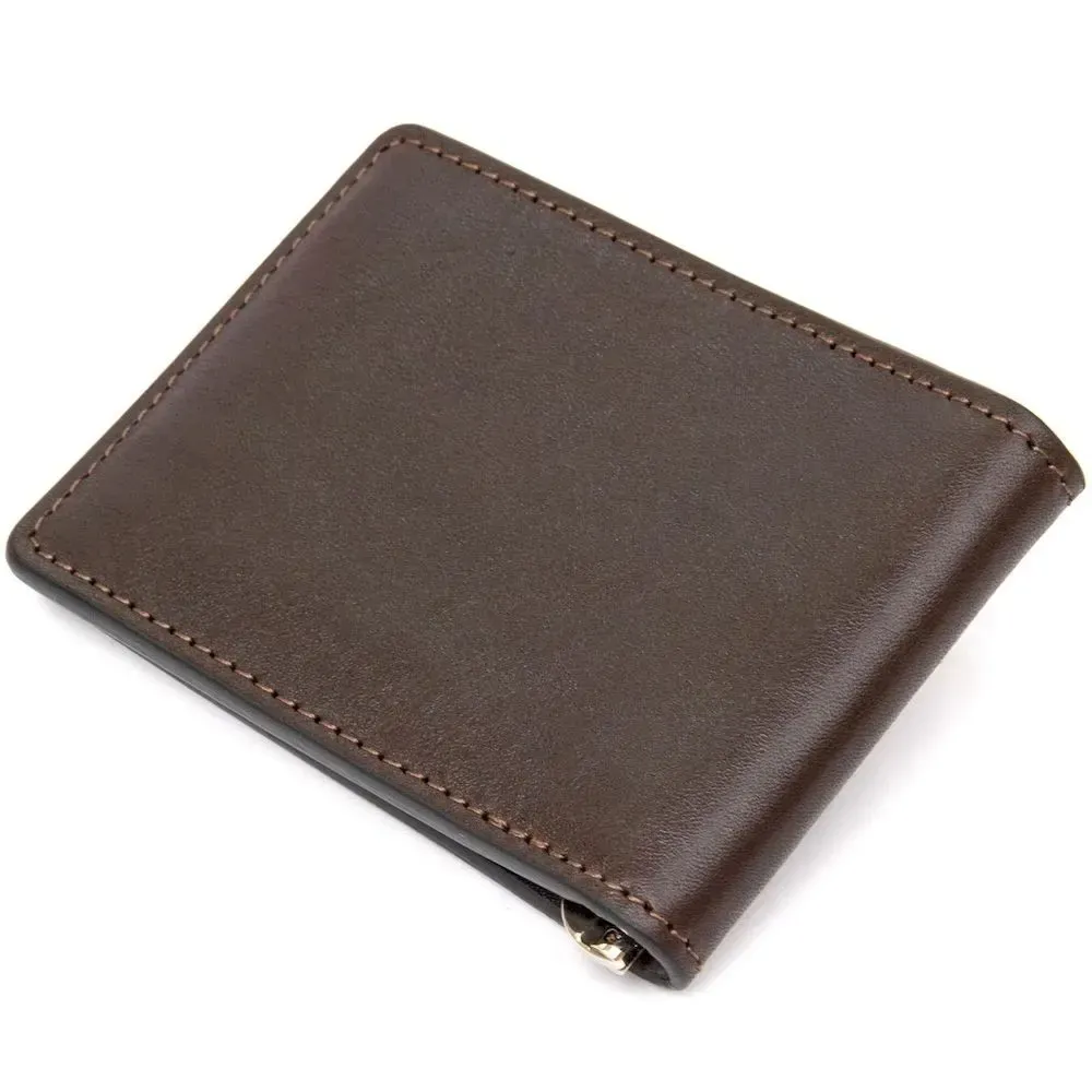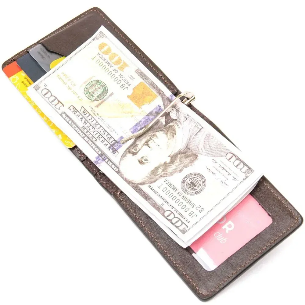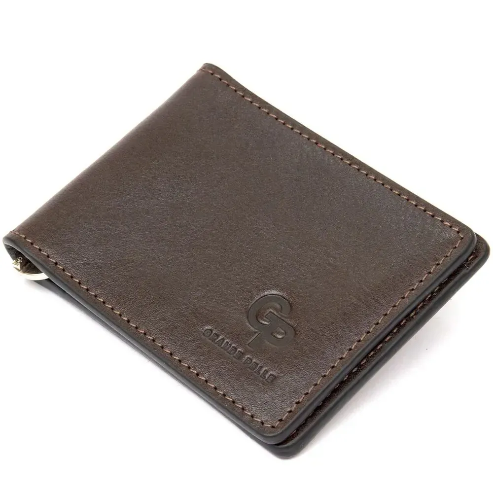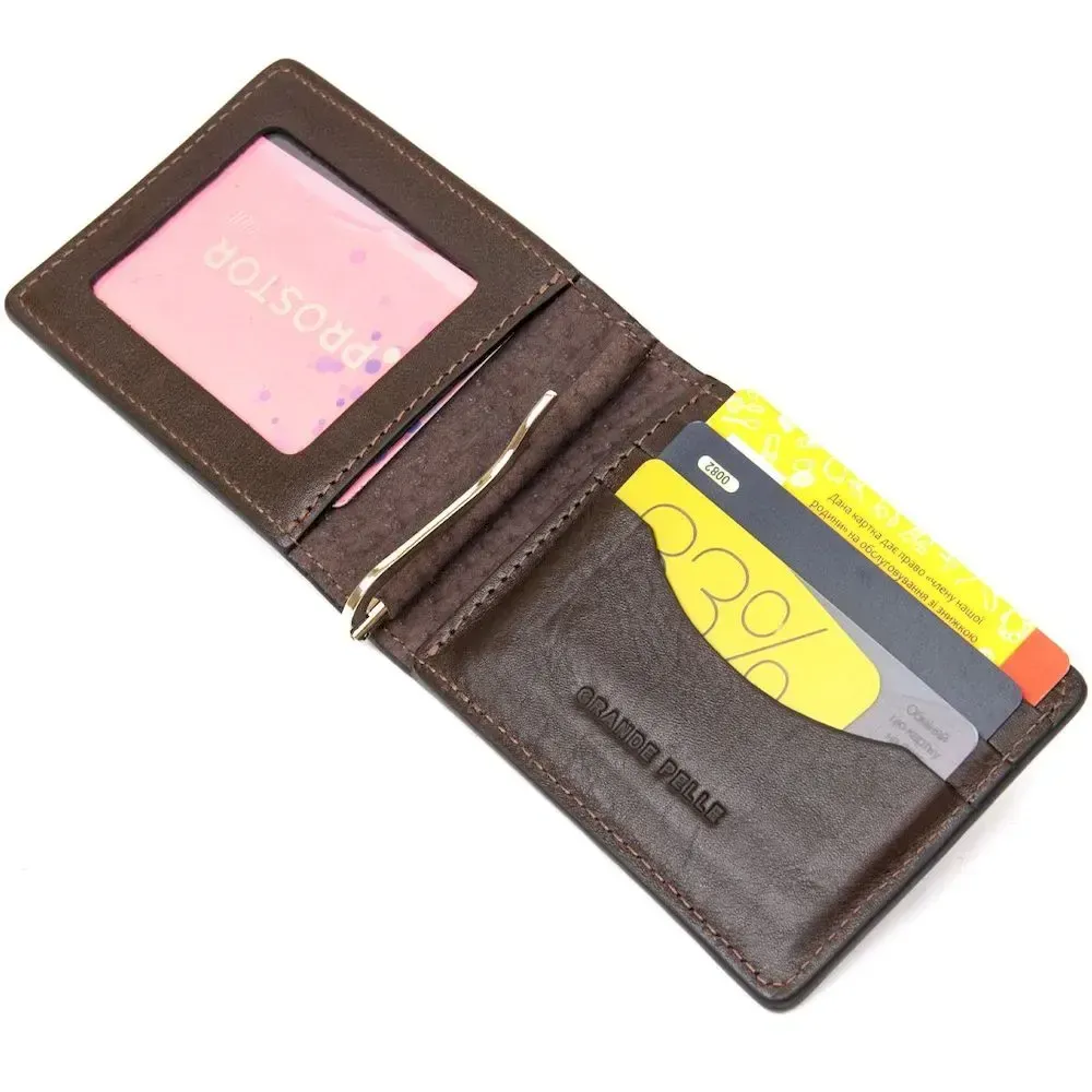 Чоловічий шкіряний затискач для грошей GRANDE PELLE 11478 Коричневий