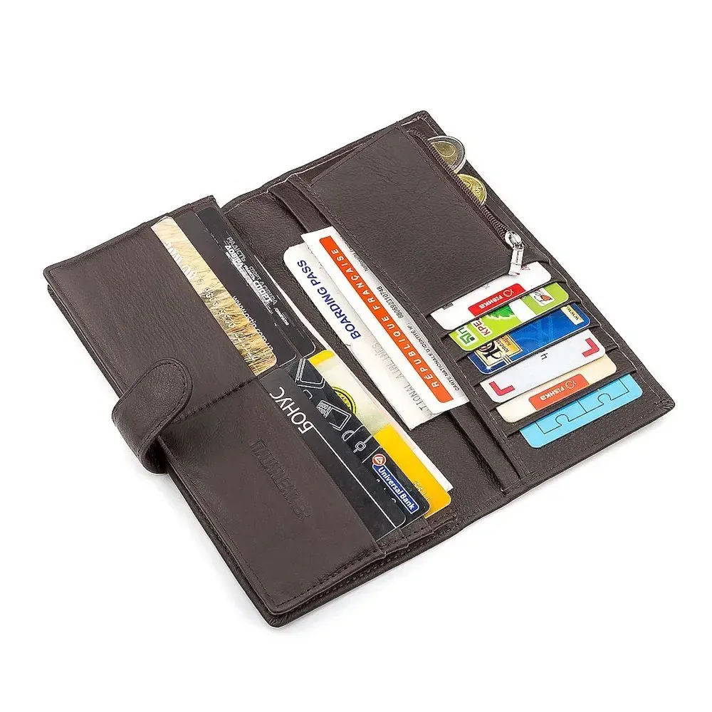 Ця модель шкіряного гаманця, що фіксується на кнопку, стане чудовою заміною звичному портмоне. Модель купюрника дає унікальну можливість зберігати паперові гроші, не згинаючи їх у кілька разів. Для цього передбачено два плоскі відділення та одна кишеня з розширенням. Також у функціоналі є дванадцять слотів для кредиток та кілька кишень на застібках. З лицьового боку нанесено відмітний знак виробника та акуратний шов по краю. Наш інтернет-магазин пропонує купити якісний шкіряний аксесуар для чоловіків за неймовірно вигідною ціною.