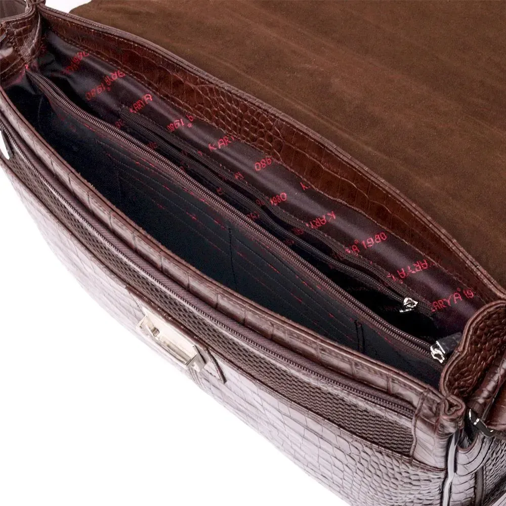 Чоловічий портфель із фактурної шкіри KARYA 20938 Коричневий