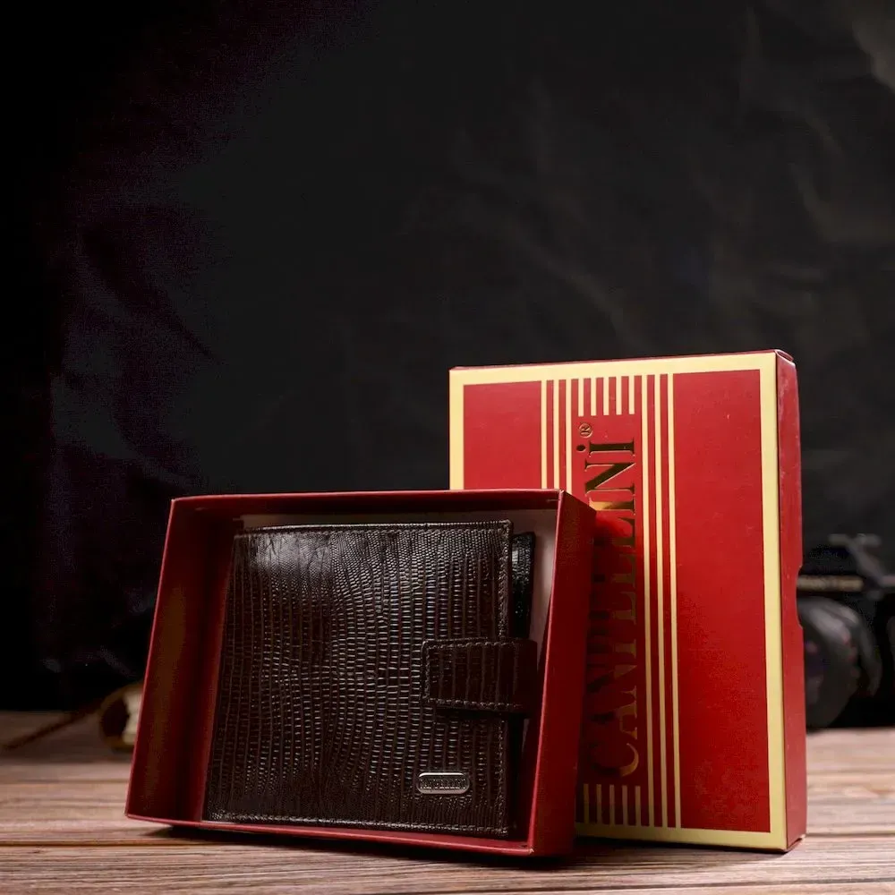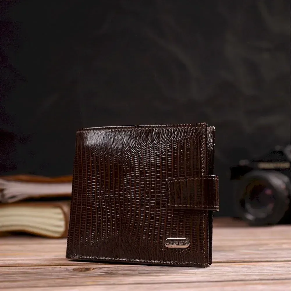 Чоловічий сучасний гаманець горизонтального формату з натуральної шкіри з тисненням CANPELLINI 21757 Коричневий