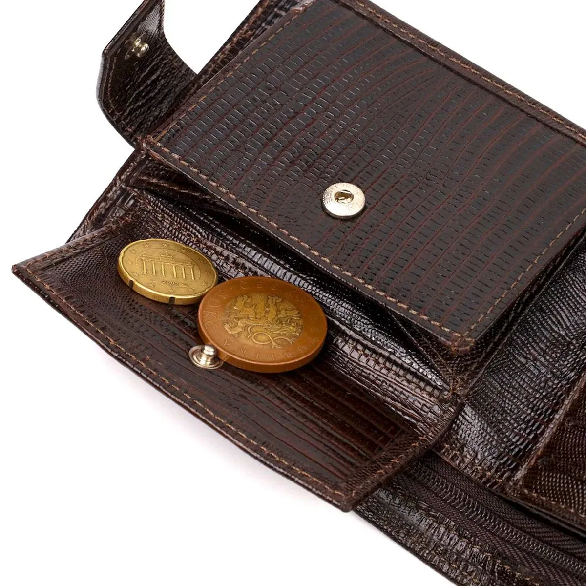 - монетниця, що закривається клапаном на кнопку;