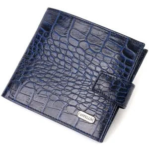Стильний чоловічий гаманець горизонтального формату з натуральної шкіри з тисненням під крокодила CANPELLINI 21758 Синій
