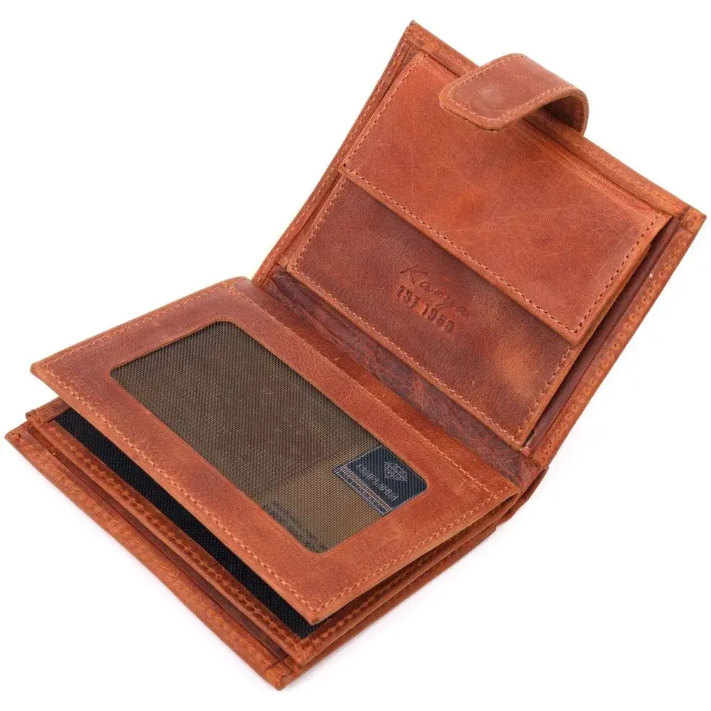 Чоловічий вертикальний гаманець у вінтажній шкірі KARYA 21388 Рудий