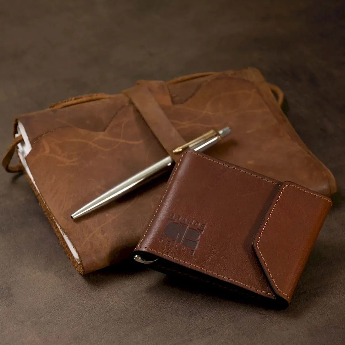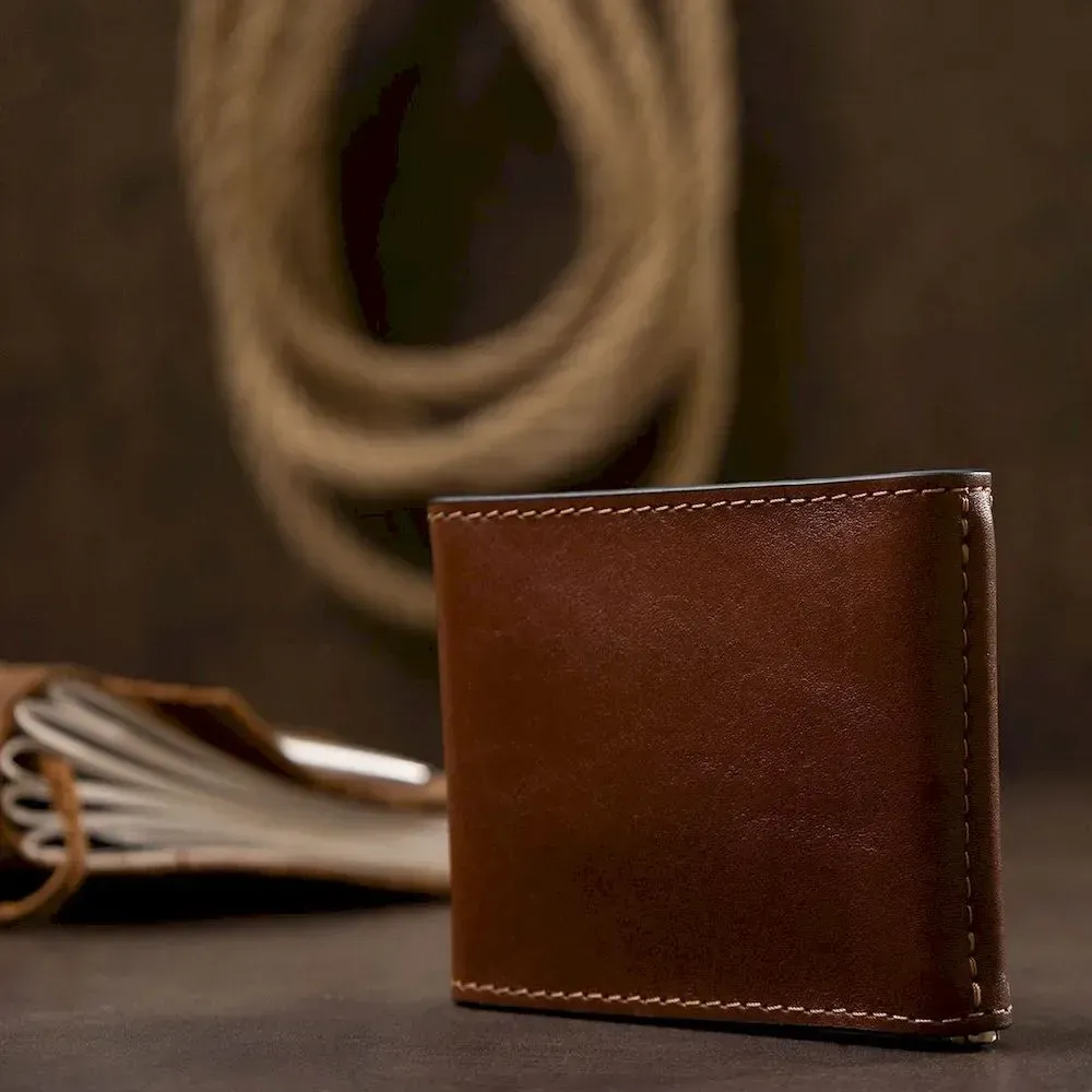 Стильний чоловічий затискач для грошей у насиченому коричневому кольорі від відомого українського виробника. Закривається на зручний та практичний магніт. Усередині також крім затиску є дві кишені для карток. Виконаний аксесуар із натуральної висококласної шкіри. Запакований затискач у фірмовий щільний чохол.