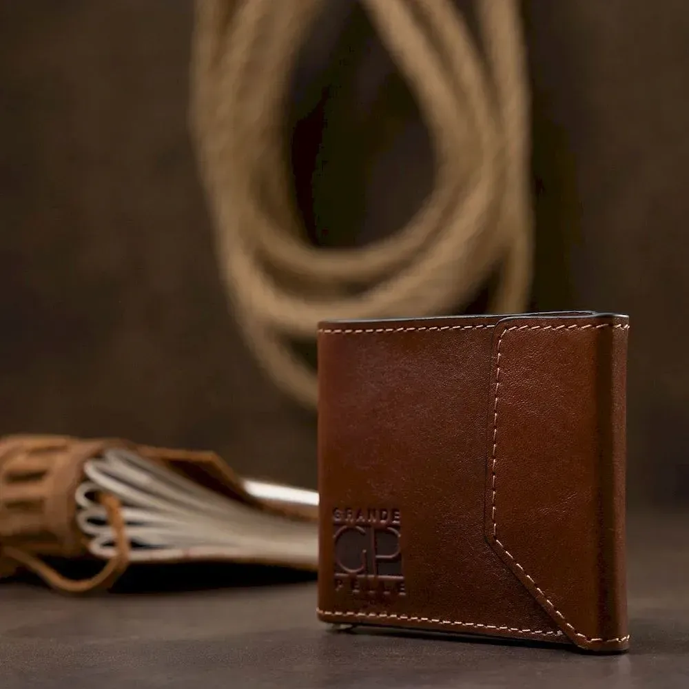 Чоловічий затиск для грошей GRANDE PELLE 11522 Коричневий