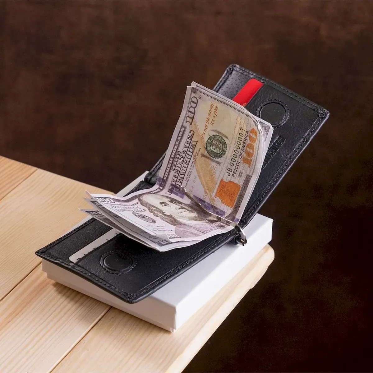 - всередині розташований металевий затискач для купюр;