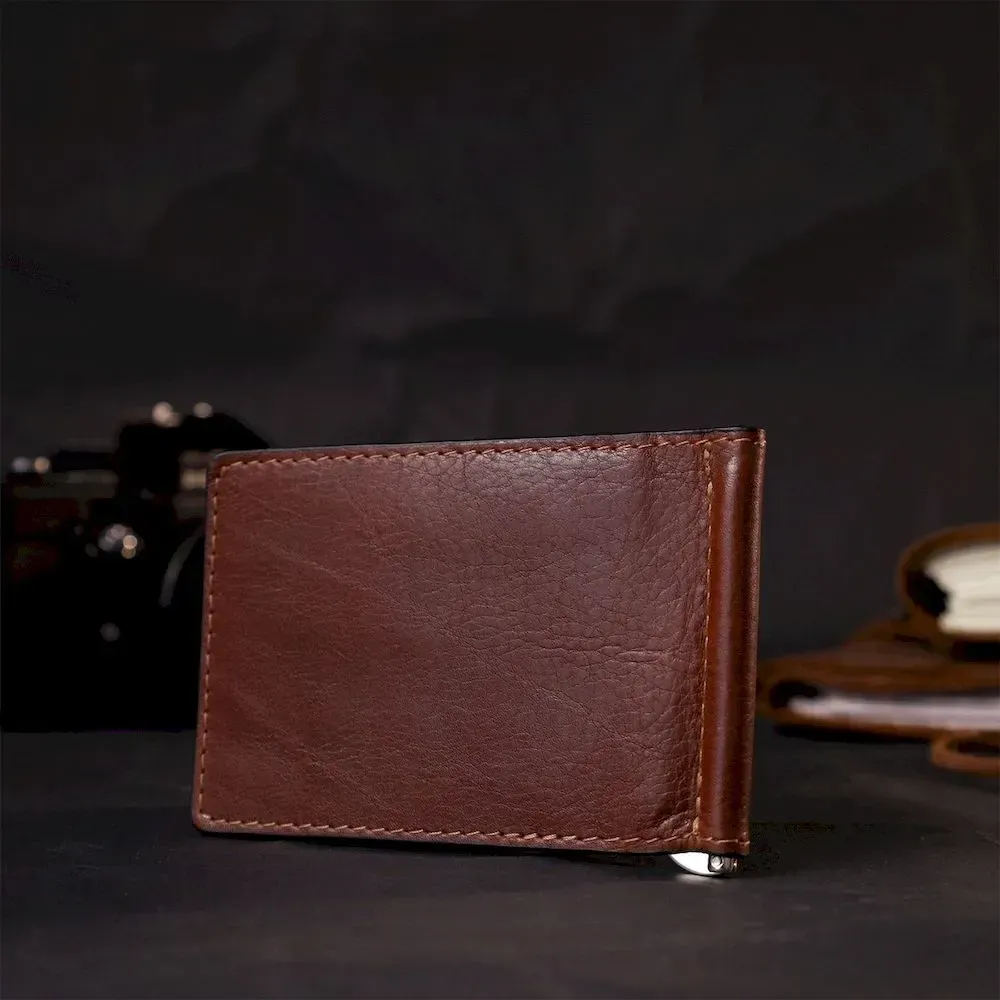 Надійний шкіряний затискач для грошей GRANDE PELLE 11668 Коричневий