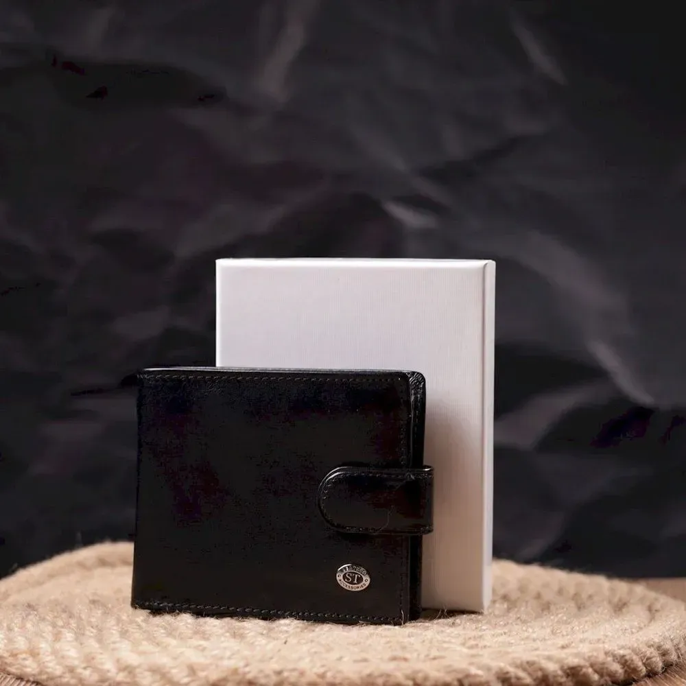 Надійний чоловічий гаманець із натуральної гладкої шкіри ST Leather 19408 Чорний