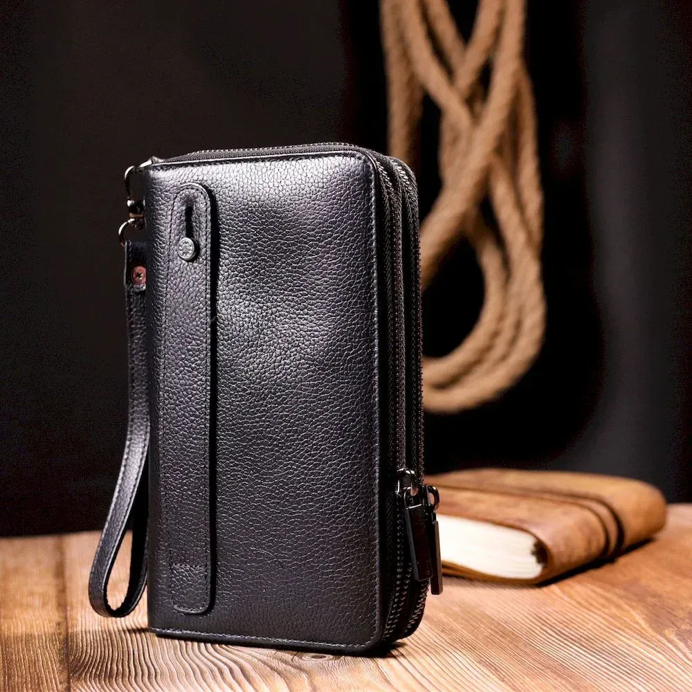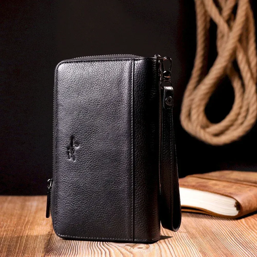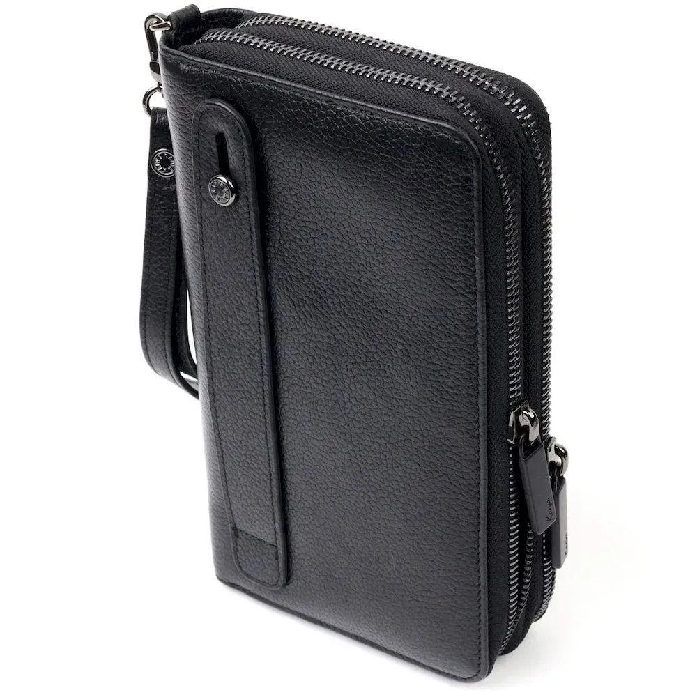 Надійний чоловічий клатч із зернистої шкіри KARYA 20906 Чорний