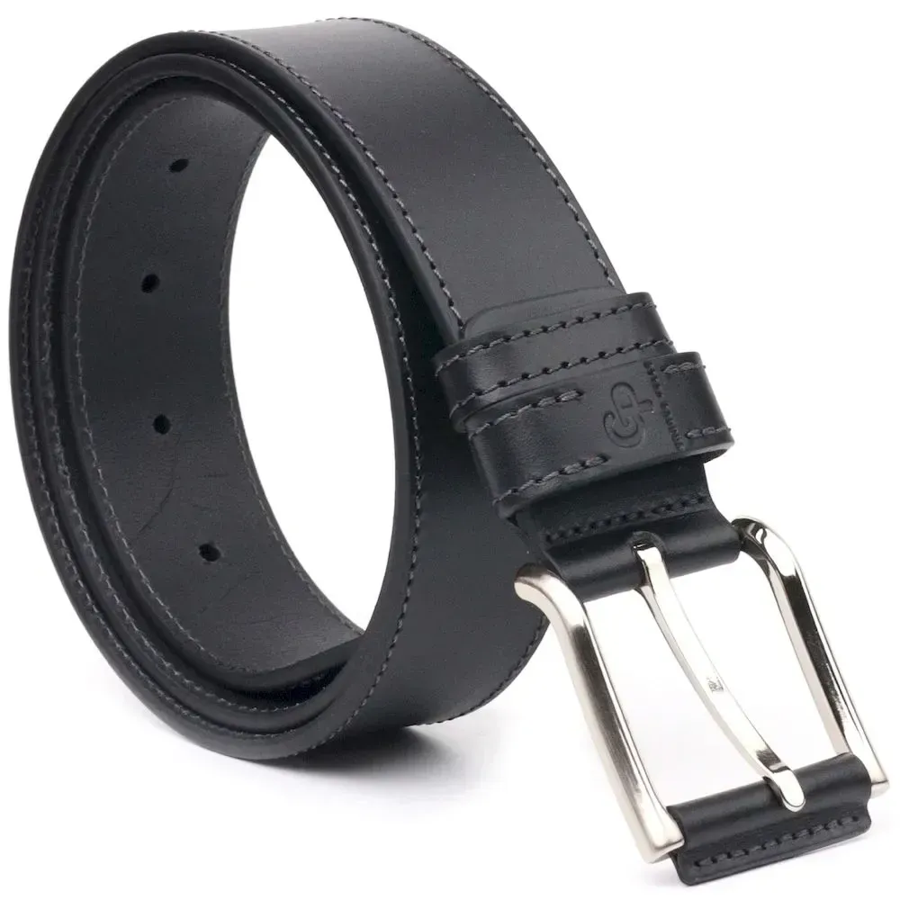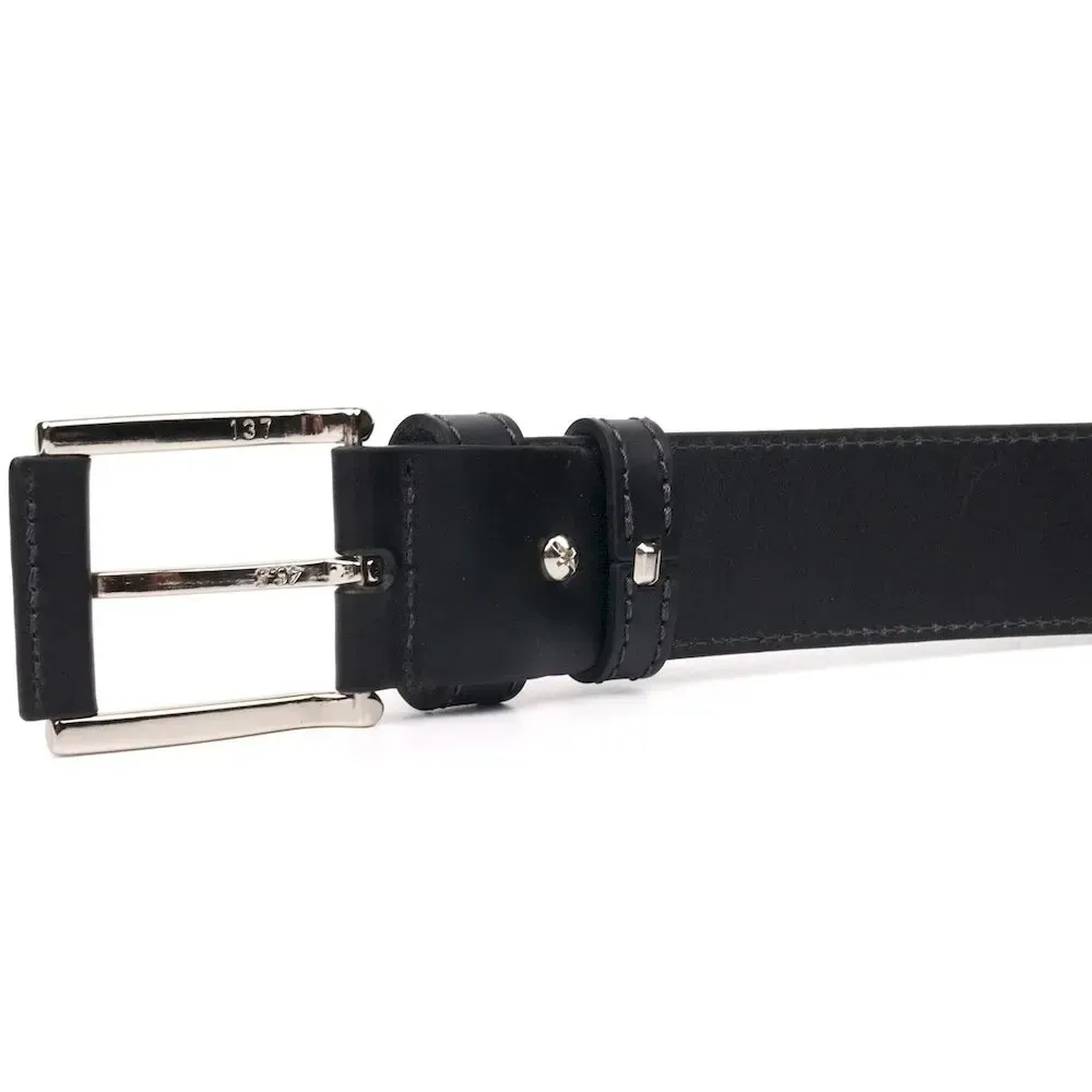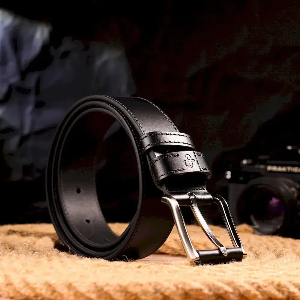 Практичний шкіряний ремінь чорного кольору з натуральної італійської шкіри від українського виробника. Хороший ремінь здатний ідеально завершити образ та підкреслити ваш статус. Ремінь виготовлений із цілісного полотна шкіри. Аксесуар має гладку фактуру, акуратно пошитий, довжина регулюється у менший бік. Доповнено ремінець сріблястою пряжкою з гострими кутами. Шкіряний ремінь один із найвдаліших і потрібних подарунків для будь-якого чоловіка.