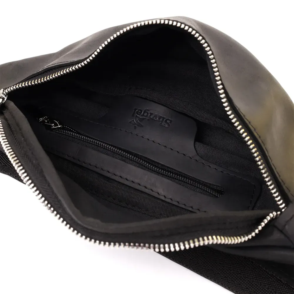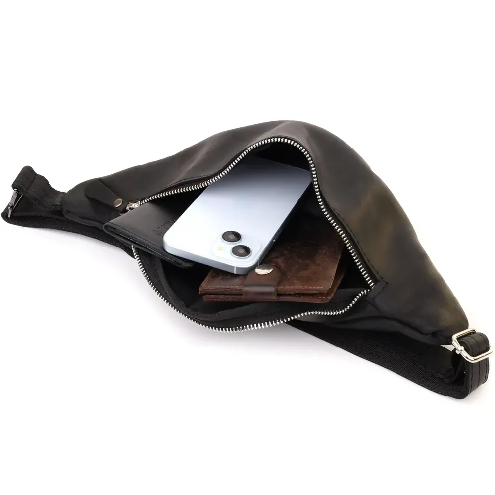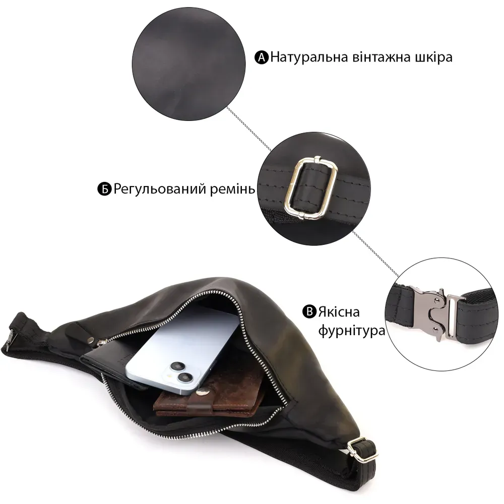 Надійна сумка бананка для чоловіків із вінтажної натуральної шкіри Shvigel 23138 Чорний