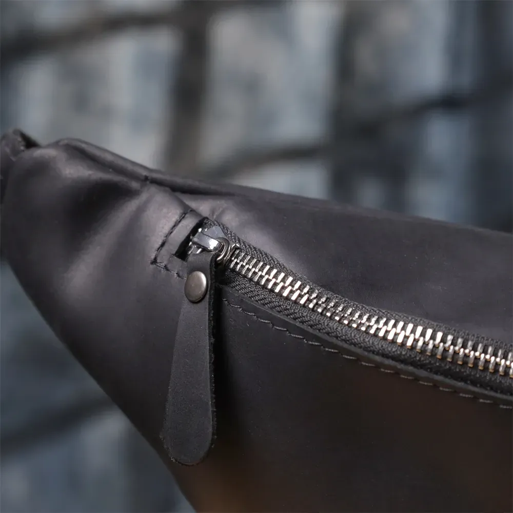 Сумка-бананка із натуральної вінтажної шкіри Shvigel - елегантна класика в чорному кольорі. Ця чоловіча сумка-бананка від українського бренду Shvigel – втілення стилю, функціональності та бездоганної якості. Виконана з натуральної вінтажної шкіри, вона представлена в глибокому чорному кольорі, що підкреслює її універсальність і робить ідеальним вибором для ділового образу, міських прогулянок чи поїздок.