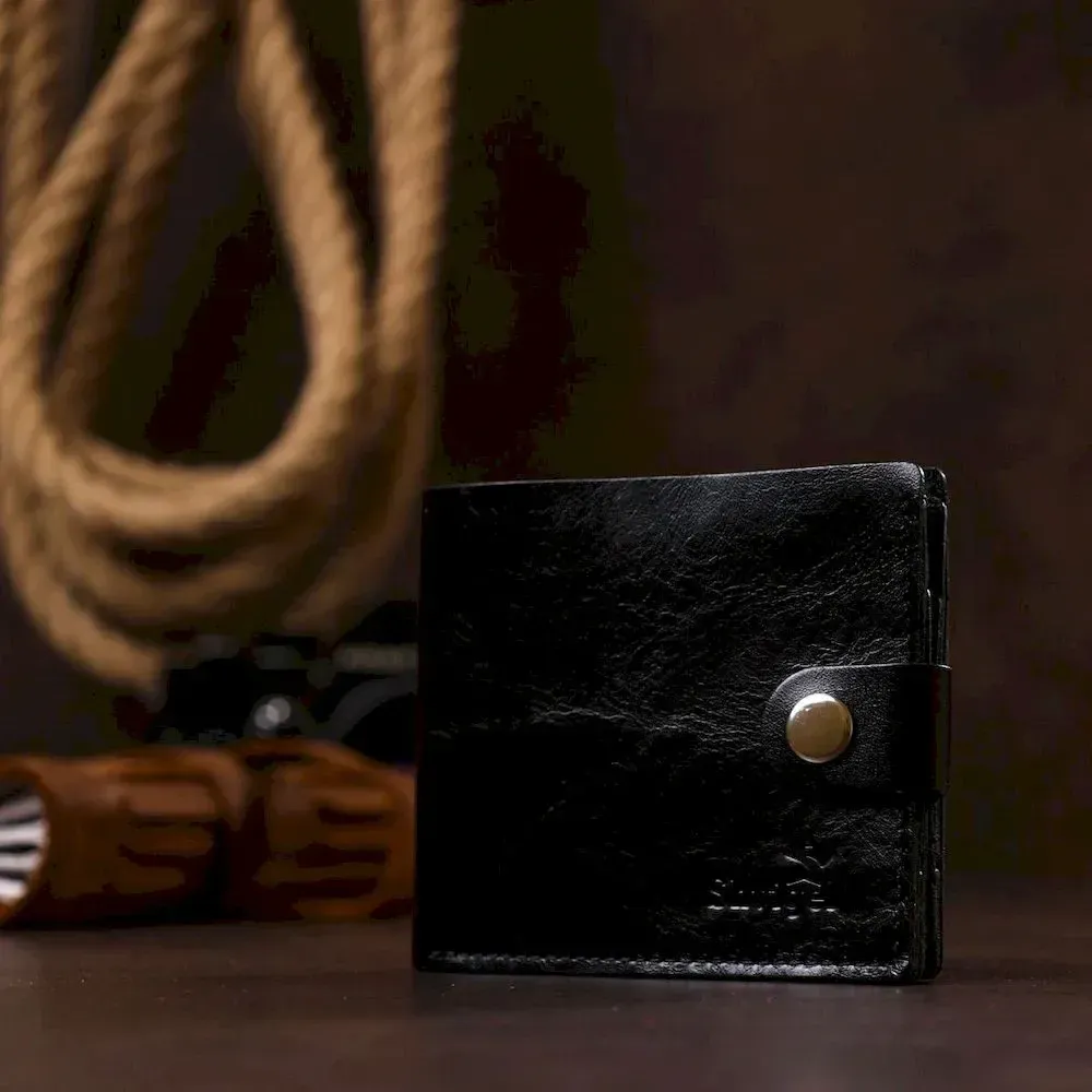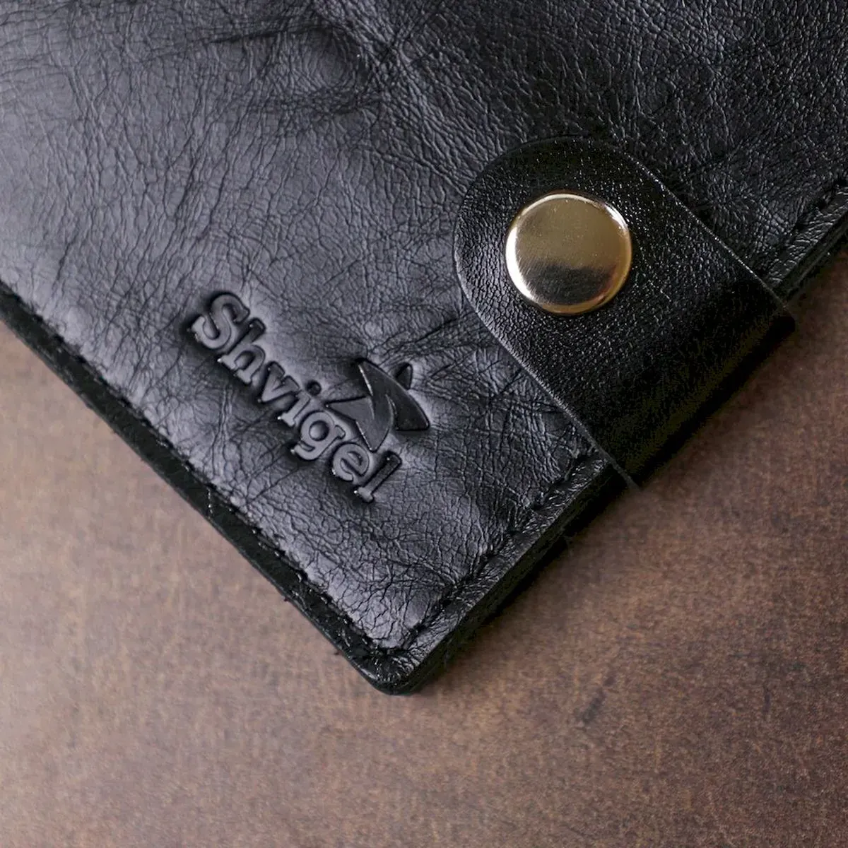 Невеликий шкіряний портмоне для чоловіків Shvigel 16460 Чорний