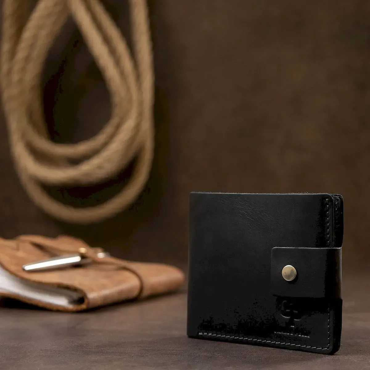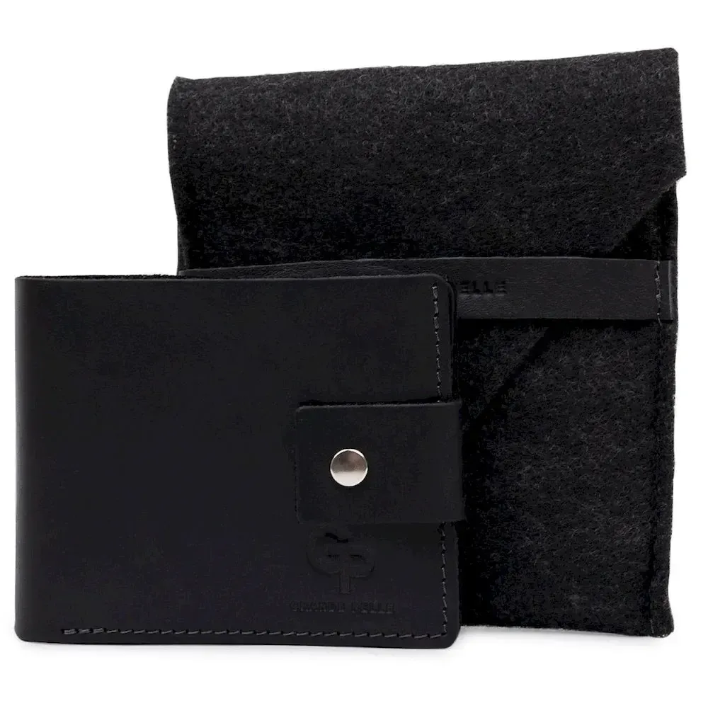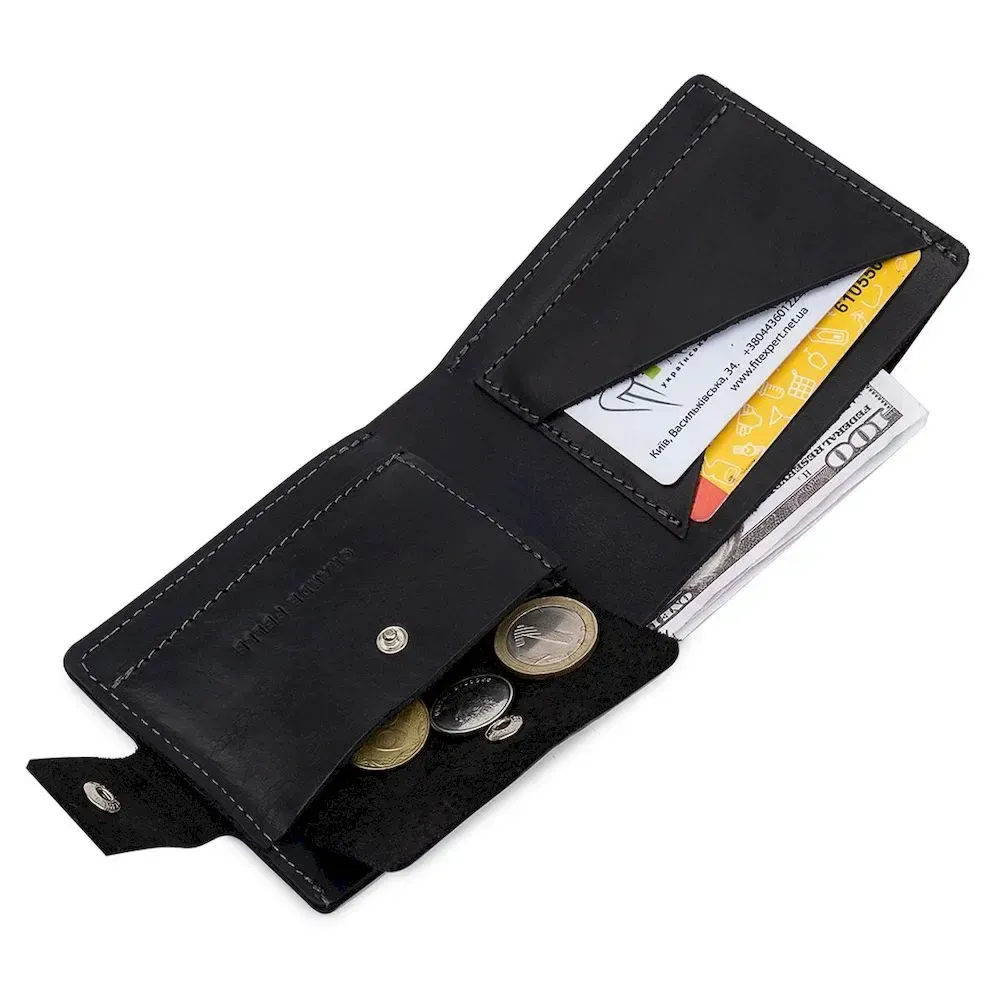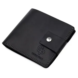Невеликий чоловічий портмоне високої якості виконання та матеріалів. Легко поміщається у сумці будь-якого розміру чи кишені. Закривається виріб на зручний хлястик із кнопкою. Усередині є містке відділення для купюр, два слоти для карток та монетниця на кнопці. Запаковано виріб у фірмовий чохол.