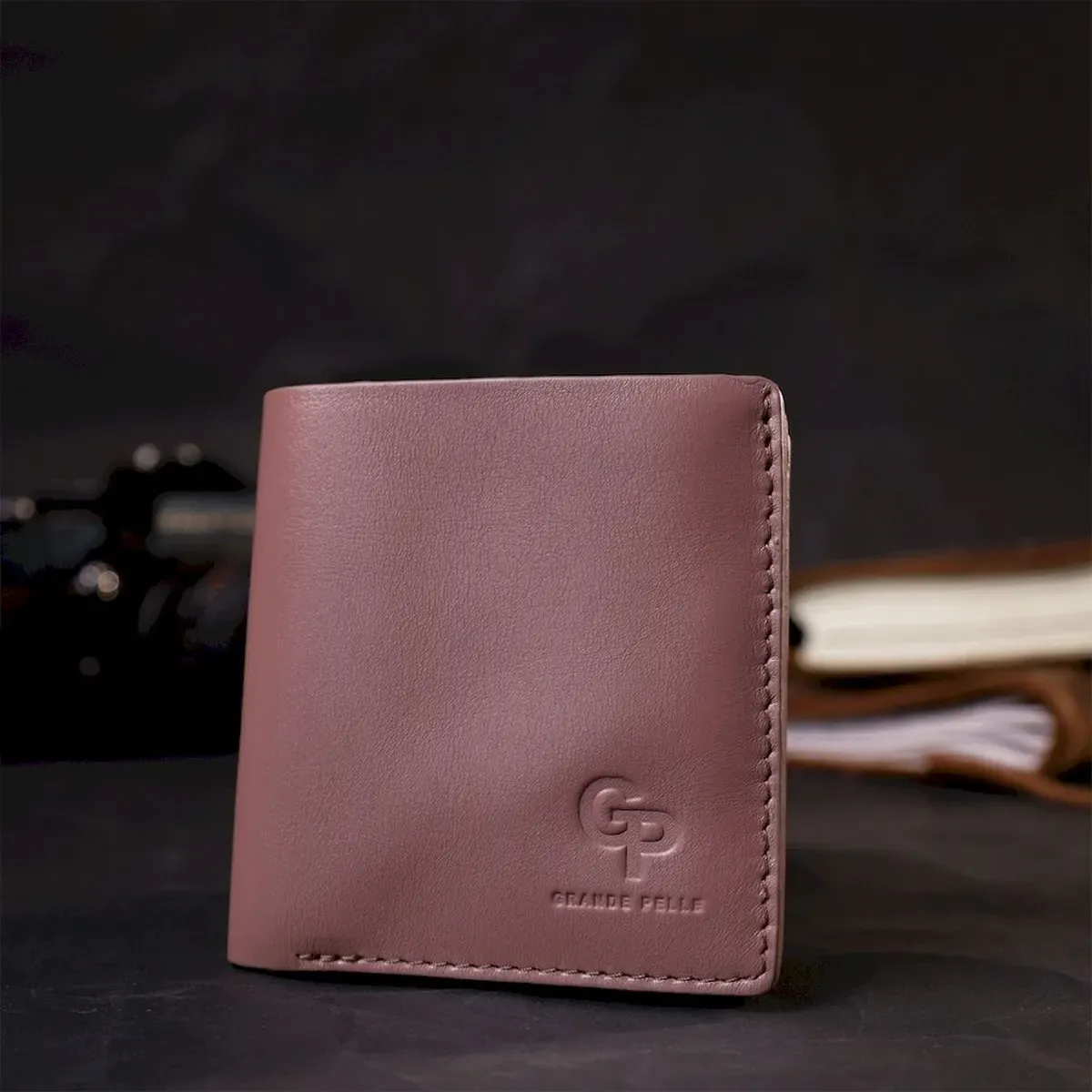 Невеликий портмоне з натуральної шкіри GRANDE PELLE 16799 Пудровий