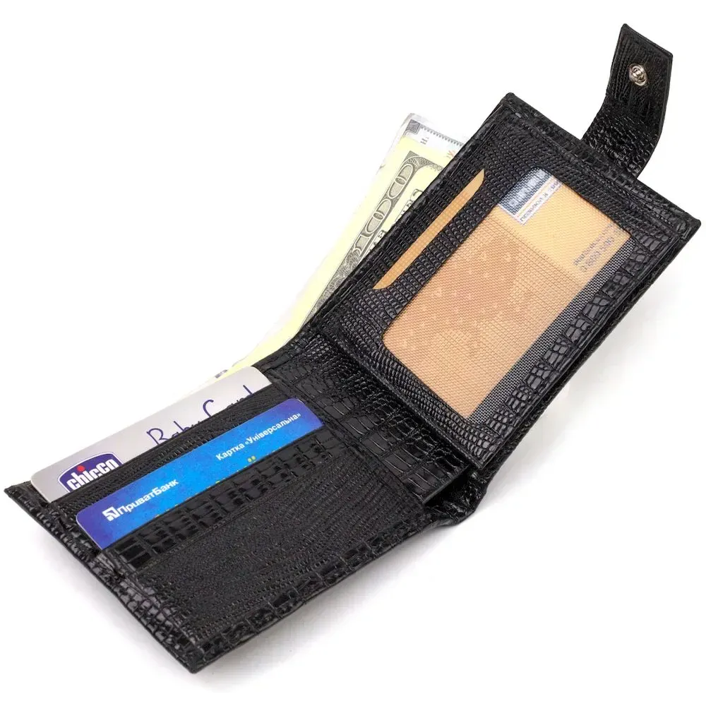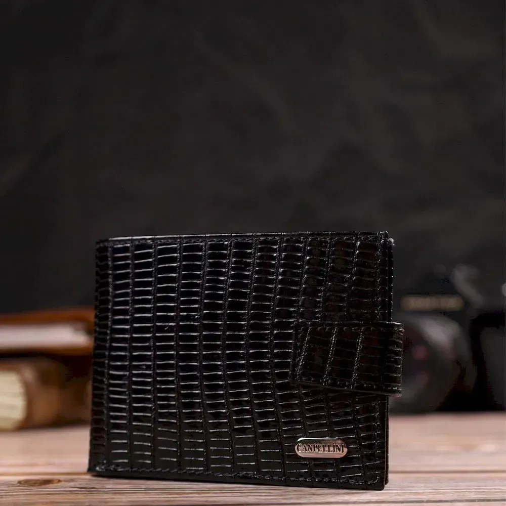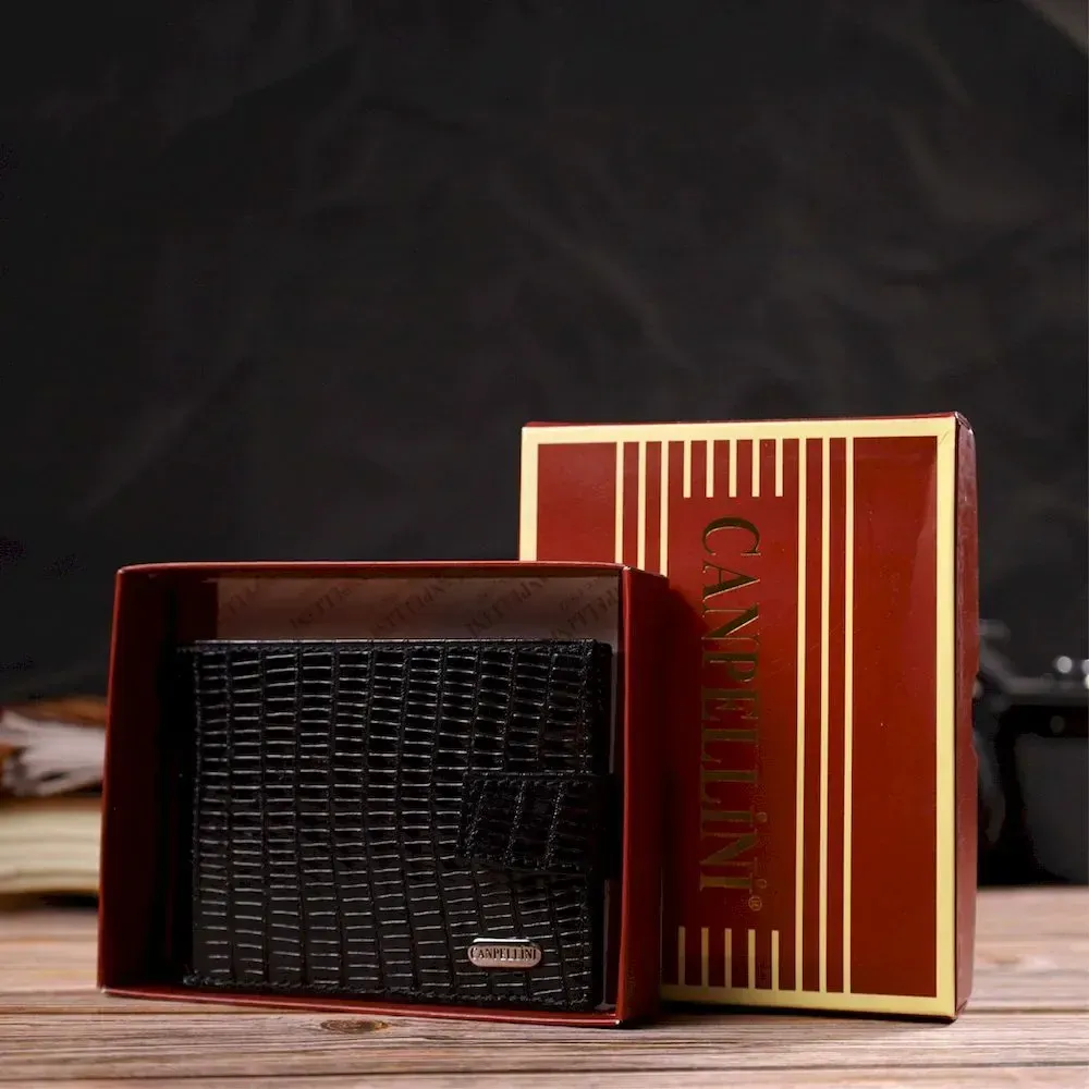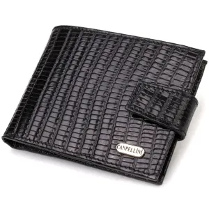 Невеликий фактурний чоловічий гаманець з натуральної шкіри з тисненням CANPELLINI 21748 Чорний