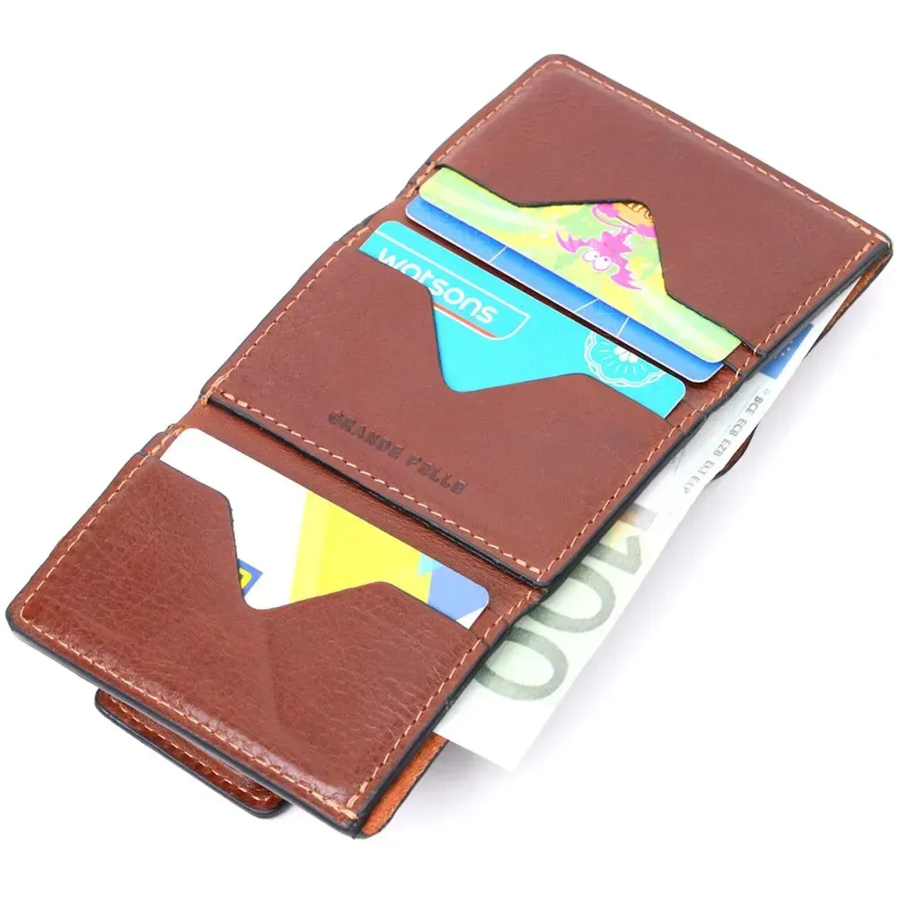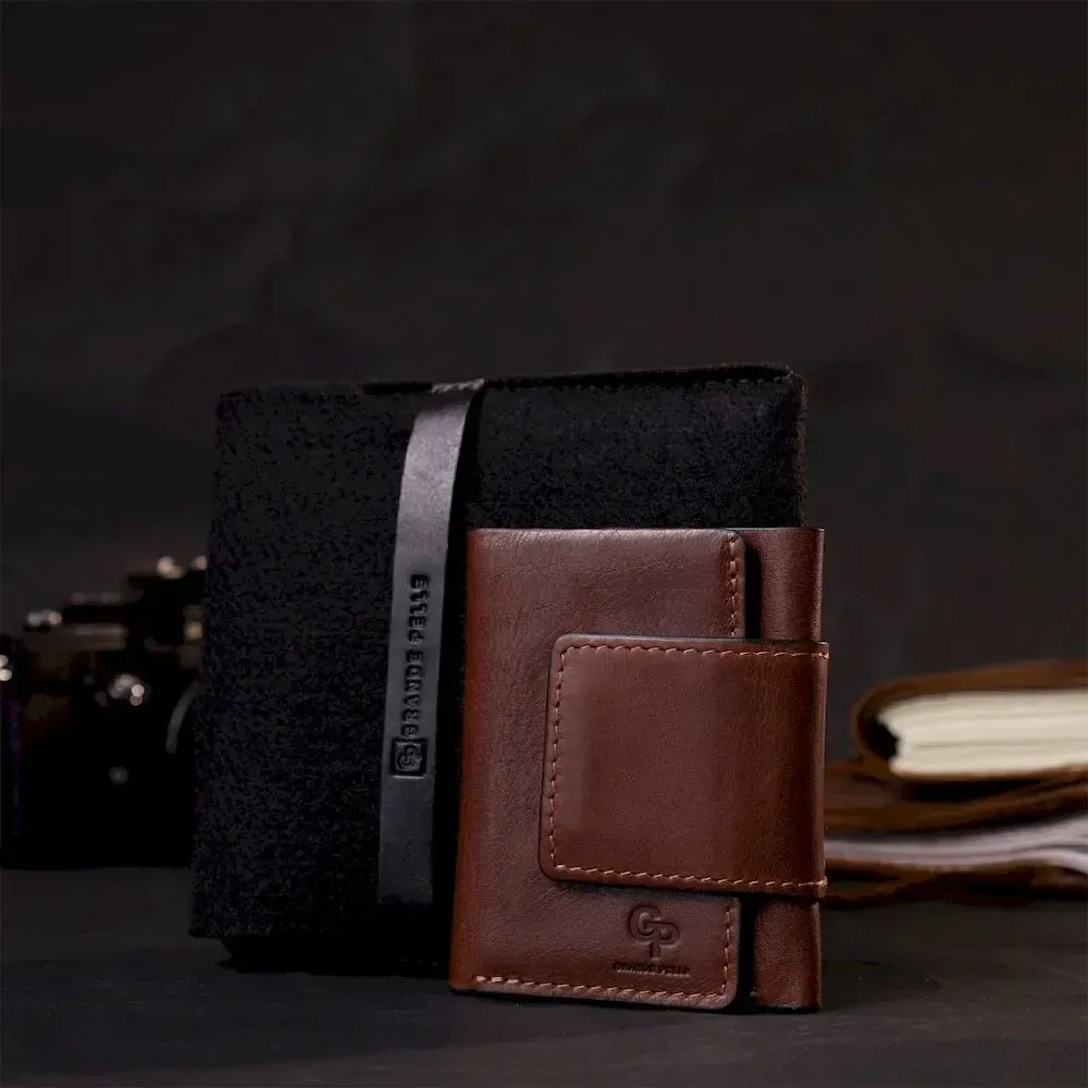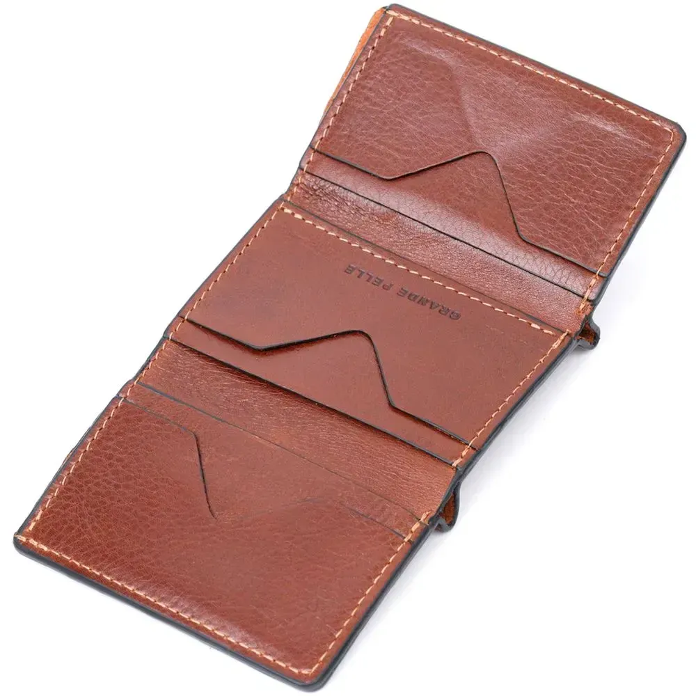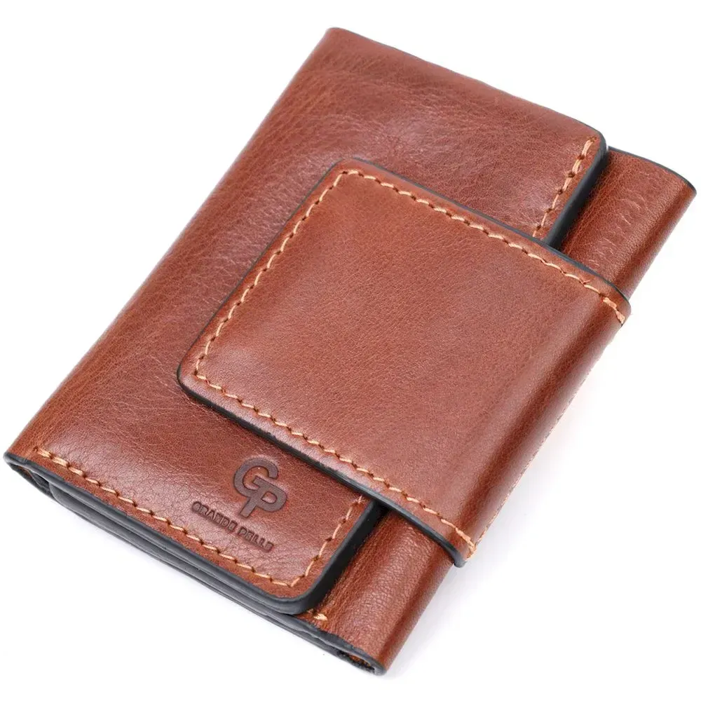 Невеликий гаманець з натуральної шкіри в три додавання GRANDE PELLE 11662 Коричневий