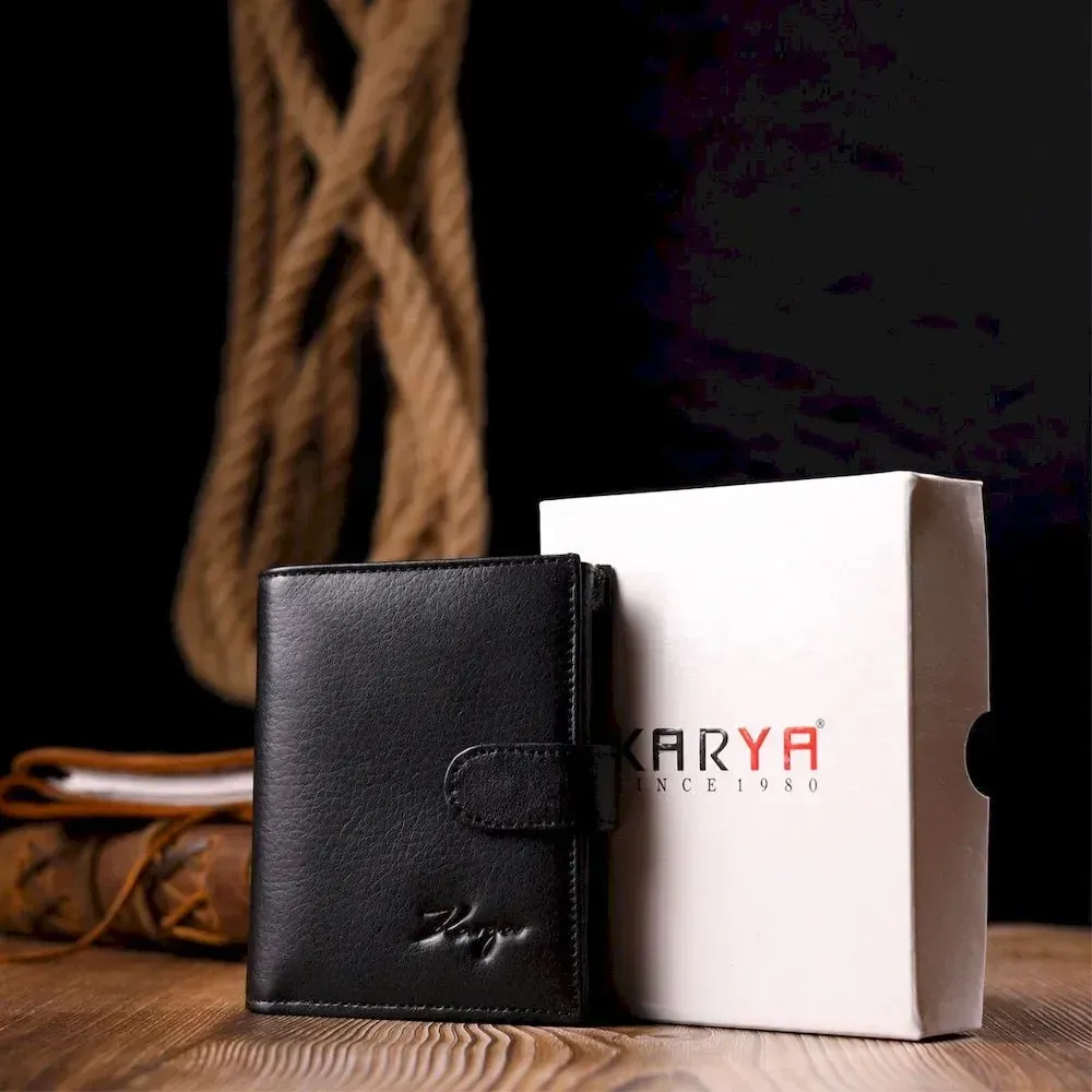 Невеликий чоловічий гаманець із натуральної шкіри KARYA 21040 Чорний