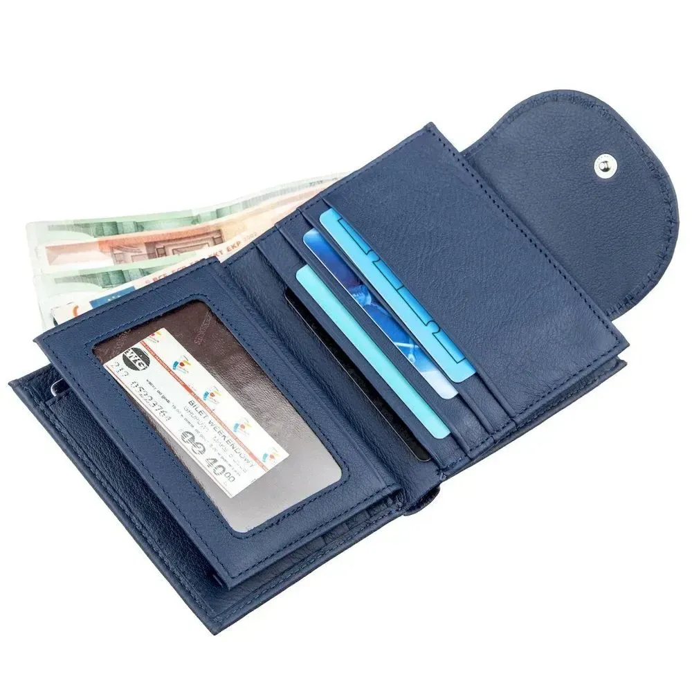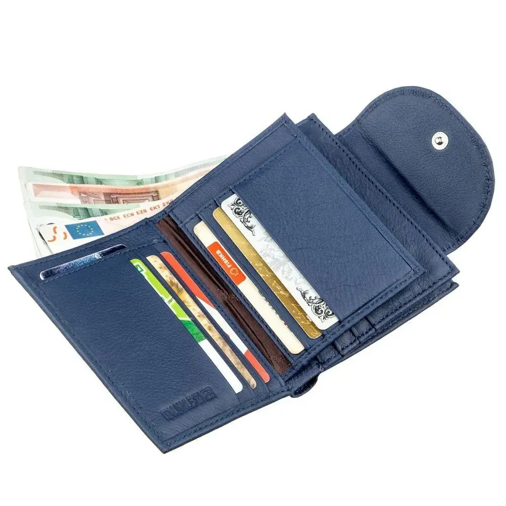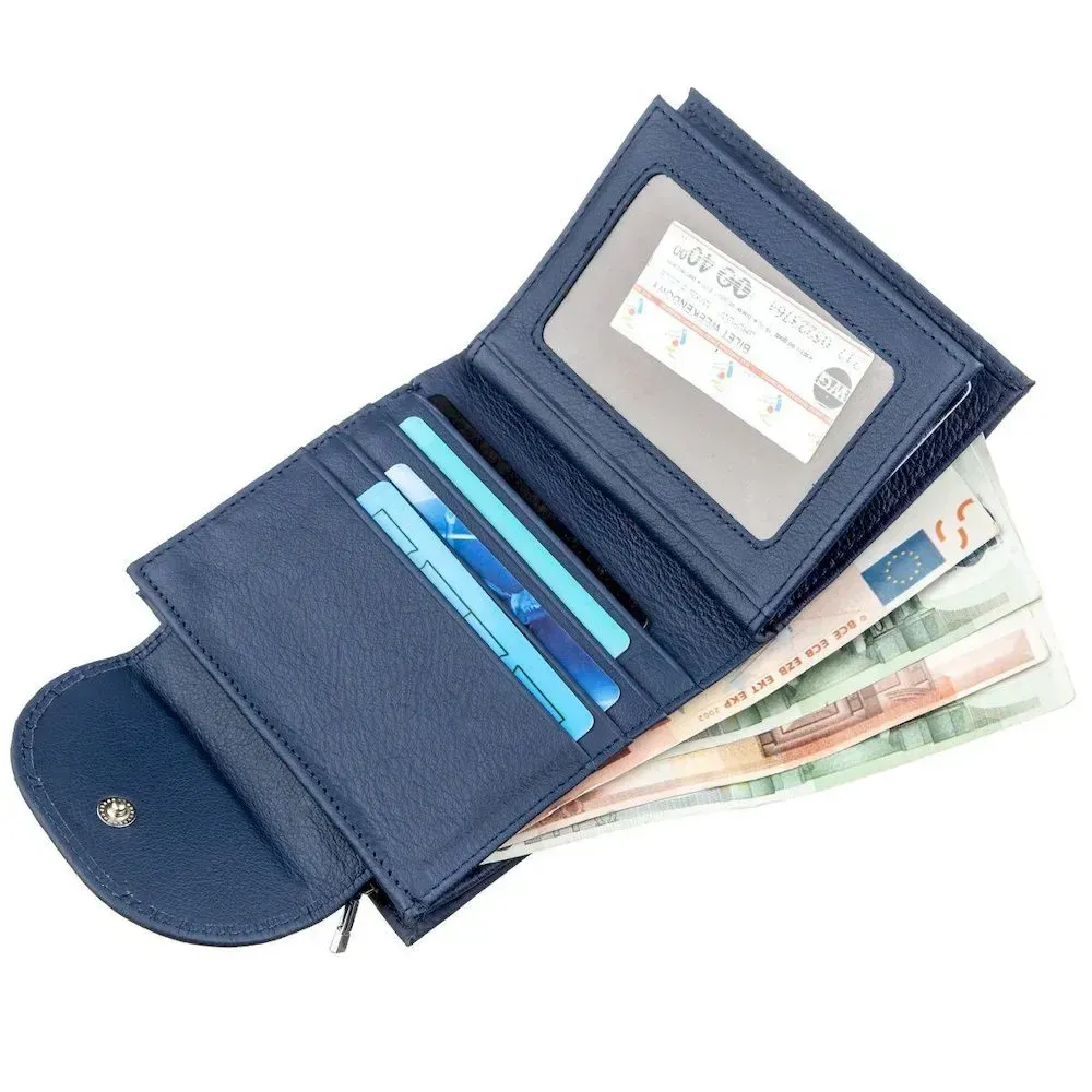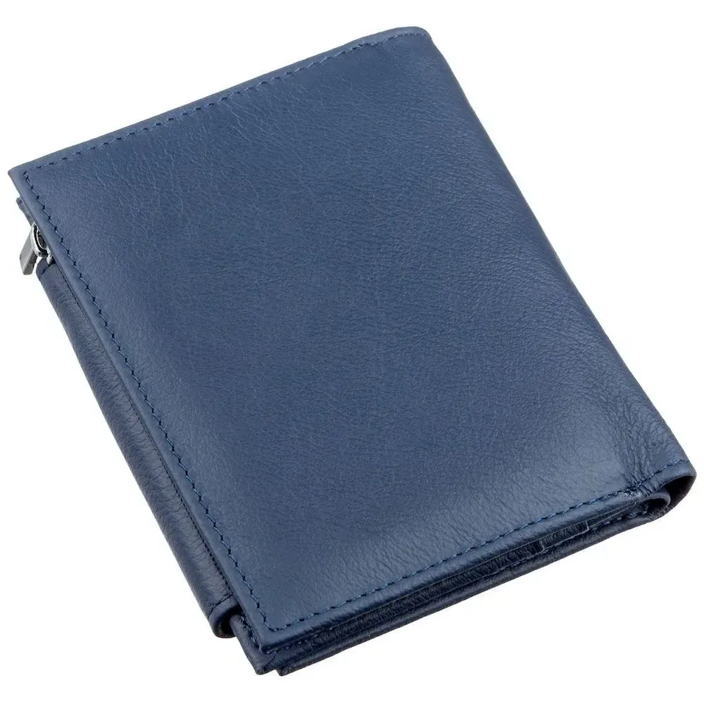 Чудовий жіночий гаманець невеликого розміру для любителів компактних речей. Матеріал виготовлення – чудова за всіма характеристиками та властивостями натуральна шкіра. Гаманець має строгий та непомітний синій колір, що дуже практично в наш час. Таке портмоне легко поміститься в будь-яку дамську сумочку, також його можна взяти в кишеню, якщо раптом виникне така необхідність. Монетниця розташовується на тильній стороні аксесуара та закривається на блискавку, а сам гаманець на зручну металеву кнопку. Цей виріб стане не просто знахідкою для Вас, а й чудовим подарунком для рідної людини, незалежно від її віку. Запакований гаманець у картонну фірмову коробку.