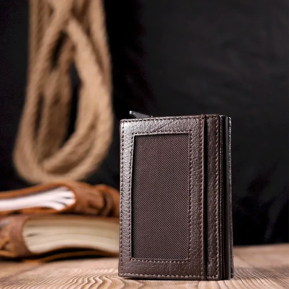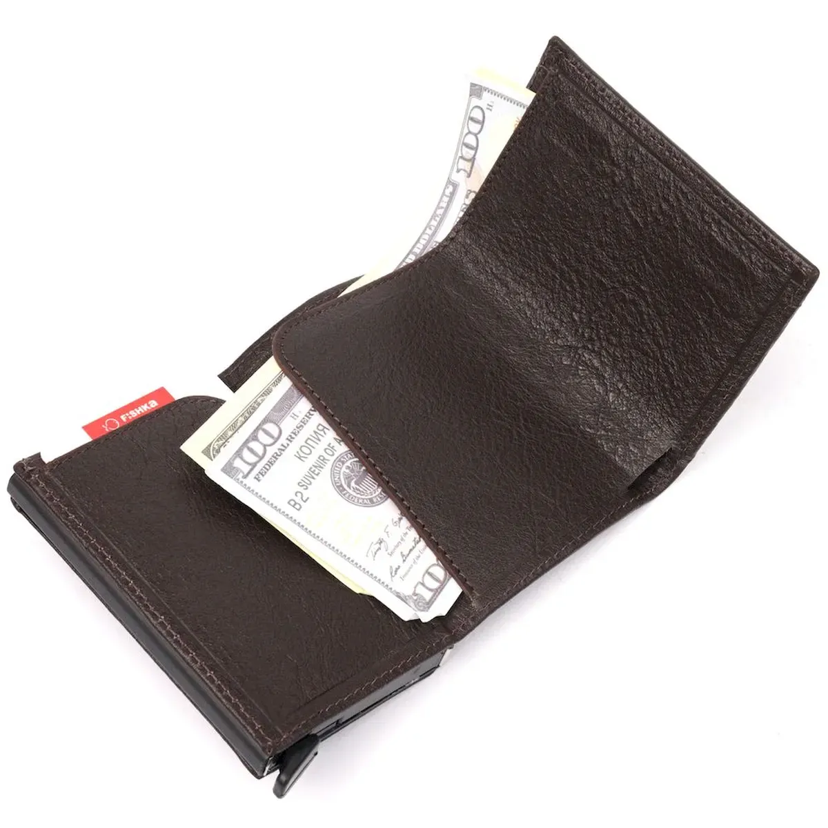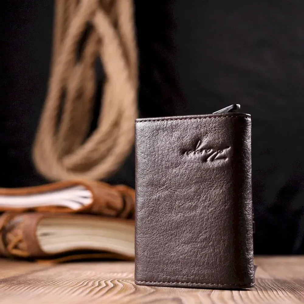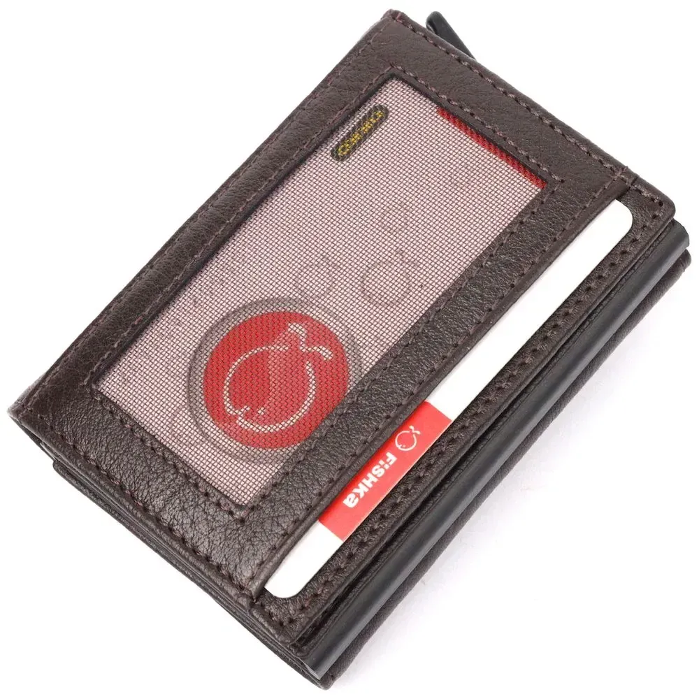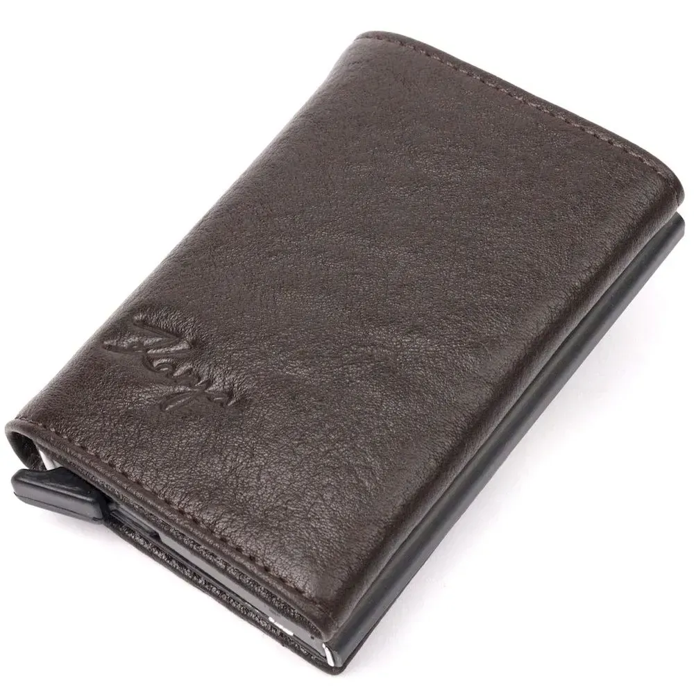 Незвичайна візитниця з натуральної шкіри KARYA 20977 Коричневий
