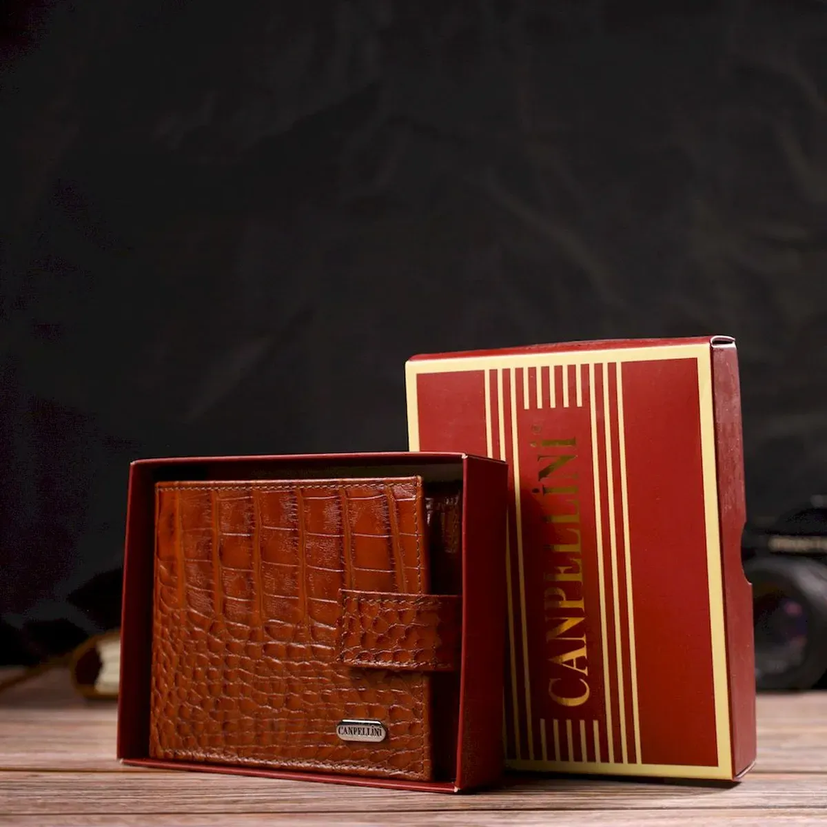 Незвичайний горизонтальний гаманець для чоловіків з натуральної шкіри з тисненням під крокодила CANPELLINI 21893 Рудий
