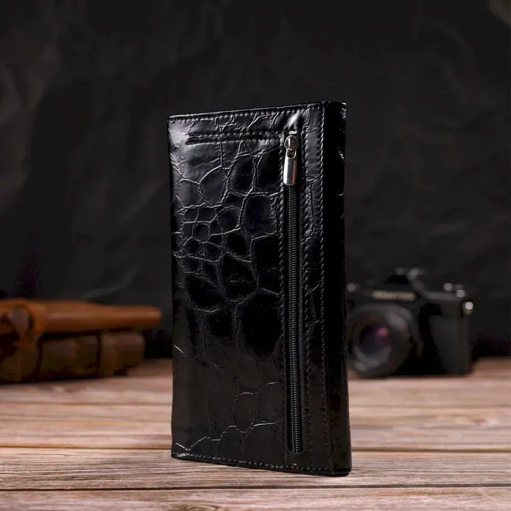 Незвичайний жіночий гаманець із натуральної фактурної шкіри CANPELLINI 21834 Чорний