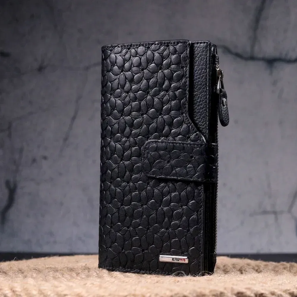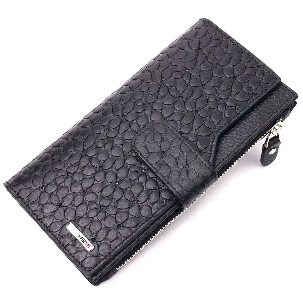Незвичайний жіночий гаманець з квітковим тисненням KARYA 21333 Чорний