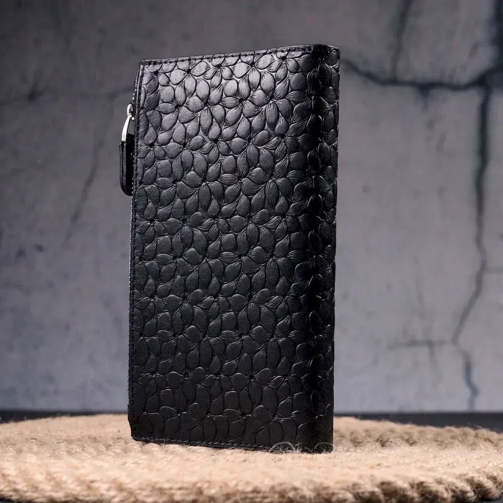 Чудовий жіночий гаманець з натуральної шкіри, з незвичайним квітковим тисненням. Усередині представлено безліч кишень, у яких можна зручно розкласти купюри, пластикові картки та документи. Такий гаманець з натуральної шкіри - це ідеальний варіант для тих, хто цінує якість, зручність та комфорт.