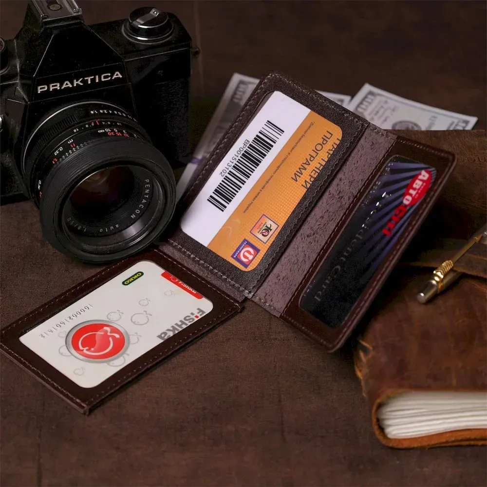 Бюджетна та дуже якісна обкладинка з натуральної шкіри. Модель дуже м'яка і приємна на дотик. Якість аксесуара на найвищому рівні. Усередині – 3 слоти для ваших документів. Ви можете помістити в них паспорт нового зразка, права водія та техпаспорт на авто або вашу кредитну картку. У такому кейсі ваші документи не м'ятимуться або затиратимуться. Обкладинка буде ідеальним подарунком для ваших близьких.