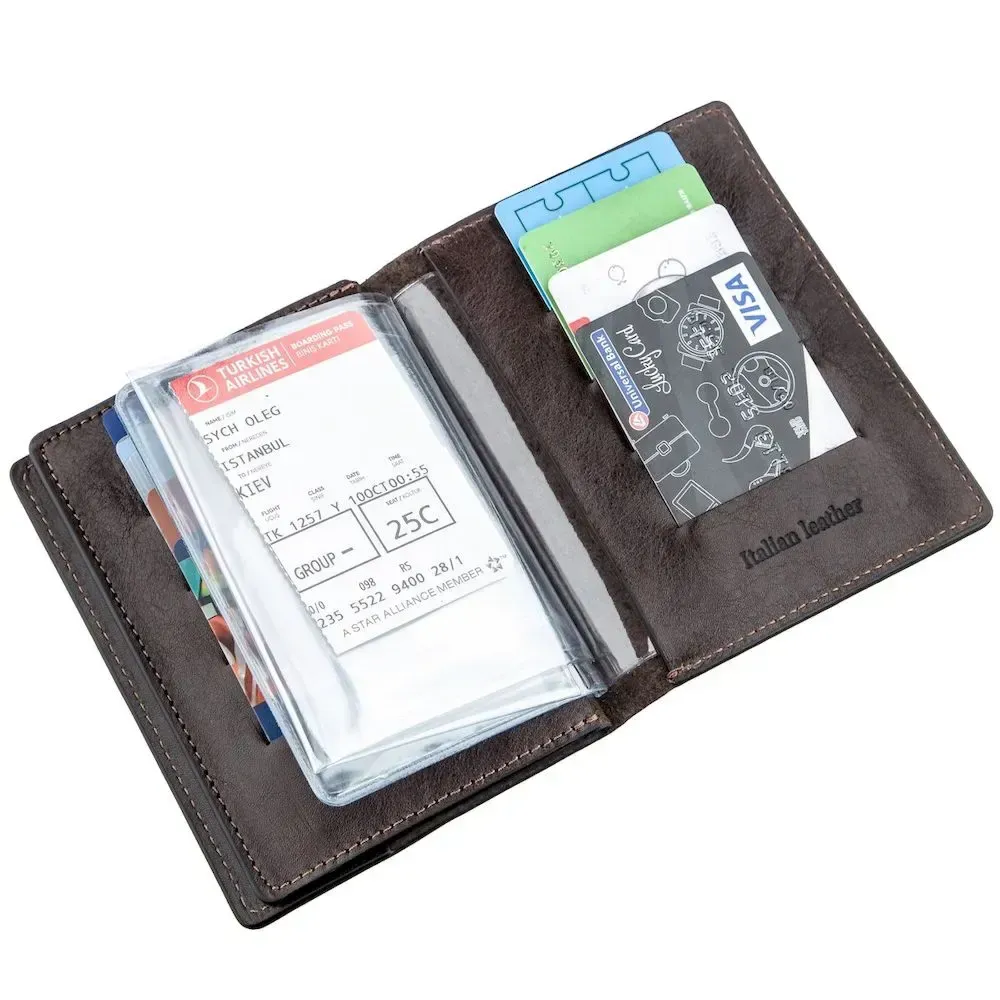 Обкладинка для документів з м'якої на дотик шкіри. З такою функціональною обкладинкою у вас усі документи будуть в одному місці. Аксесуар переливається на сонце і має невеликий розмір та витриманий дизайн. Обкладинка підійде як чоловікові, так і жінці. Модель має всередині вбудовану обкладинку для паспорта та файл для страховки чи довіреності. Аксесуар стане чудовим подарунком на будь-яке свято.
