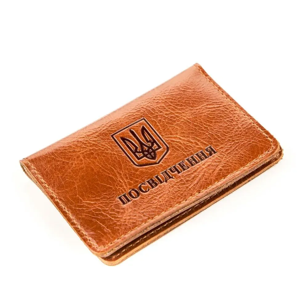 Компактна та практична обкладинка для посвідчення з натуральної шкіри, приємної та м'якої на дотик. Аксесуар має дві внутрішні кишені під прозорою плівкою і тиснення “тризуб”, на зовнішній стороні. Через частого використання документів, вони досить швидко зношуються і набувають досить не презентабельного вигляду, уникнути це, вам допоможе використання обкладинки на документи.