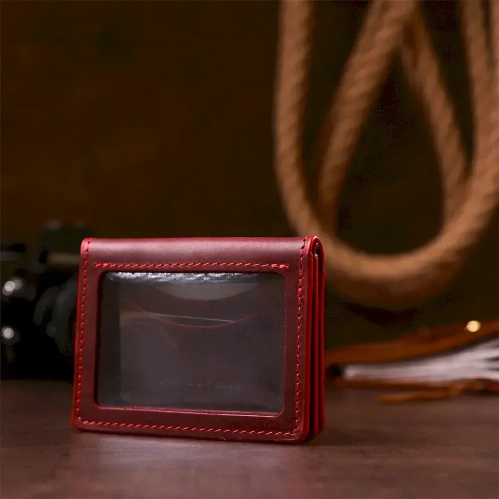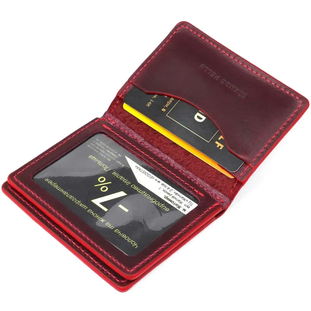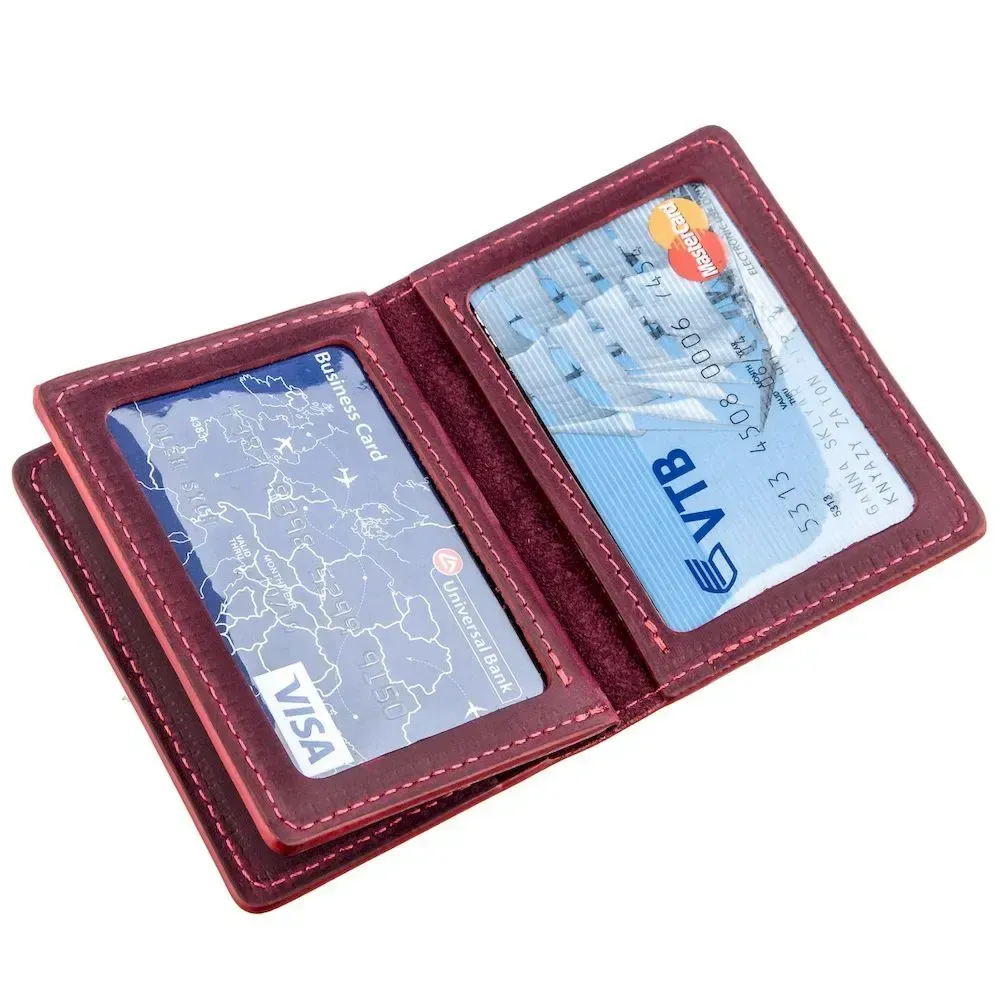 Компактна та практична обкладинка для прав водія з натуральної вінтажної шкіри, характерними ознаками якої є потертості та неоднорідність забарвлення. В обкладинці два слоти для кредиток та два відділення для прав під прозорою плівкою. Аксесуар виконаний виключно з італійської натуральної шкіри відібраної та перевіреної. Прошита обкладинка по краях червоним рівним рядком. Аксесуар легко поміститься в кишеню штанів і стане чудовим подарунком як для чоловіка, так і для жінки.