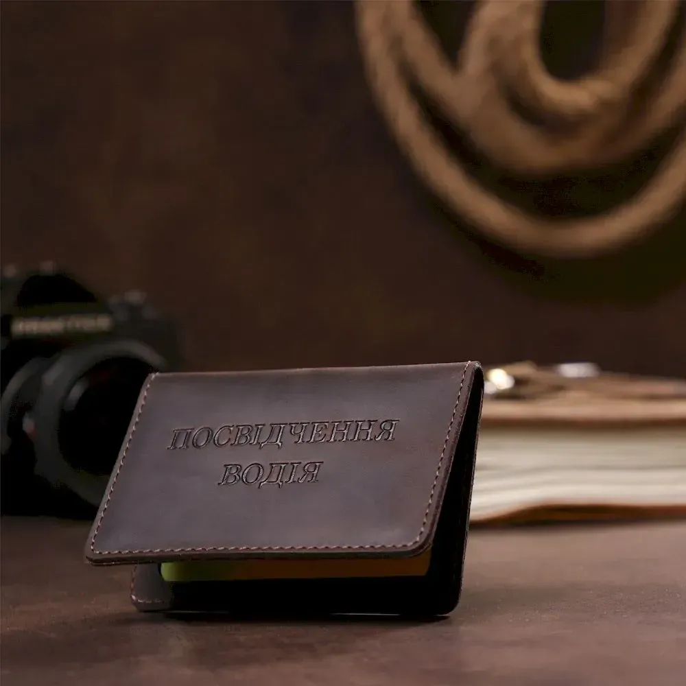 Компактна та практична обкладинка для водійських прав з натуральної вінтажної шкіри, характерними ознаками якої є потертості та неоднорідність забарвлення. Для виготовлення застосовується виключно високоякісні матеріали та фурнітура. Аксесуар має дві внутрішні кишені під прозорою плівкою. Відмінна ідея для подарунка для рідних та близьких людей.