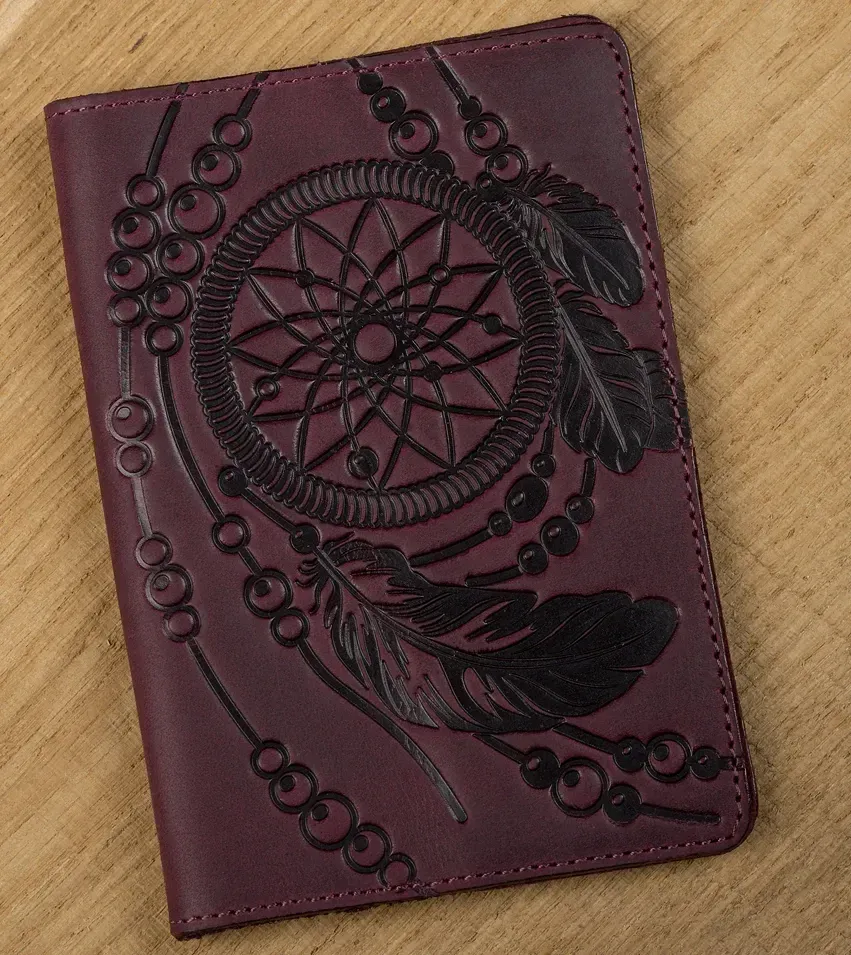 Дизайнерська обкладинка на паспорт із натуральної шкіри. Малюнок на лицьовій стороні виробу зроблений в стилі індійського талісмана Ловця Снов (dreamcatcher). Усередині обкладинки Ви знайдете тісний логотип компанії-виробника SHVIGEL. Обкладинка на паспорт поставляється у фірмовому текстильному мішечку.
