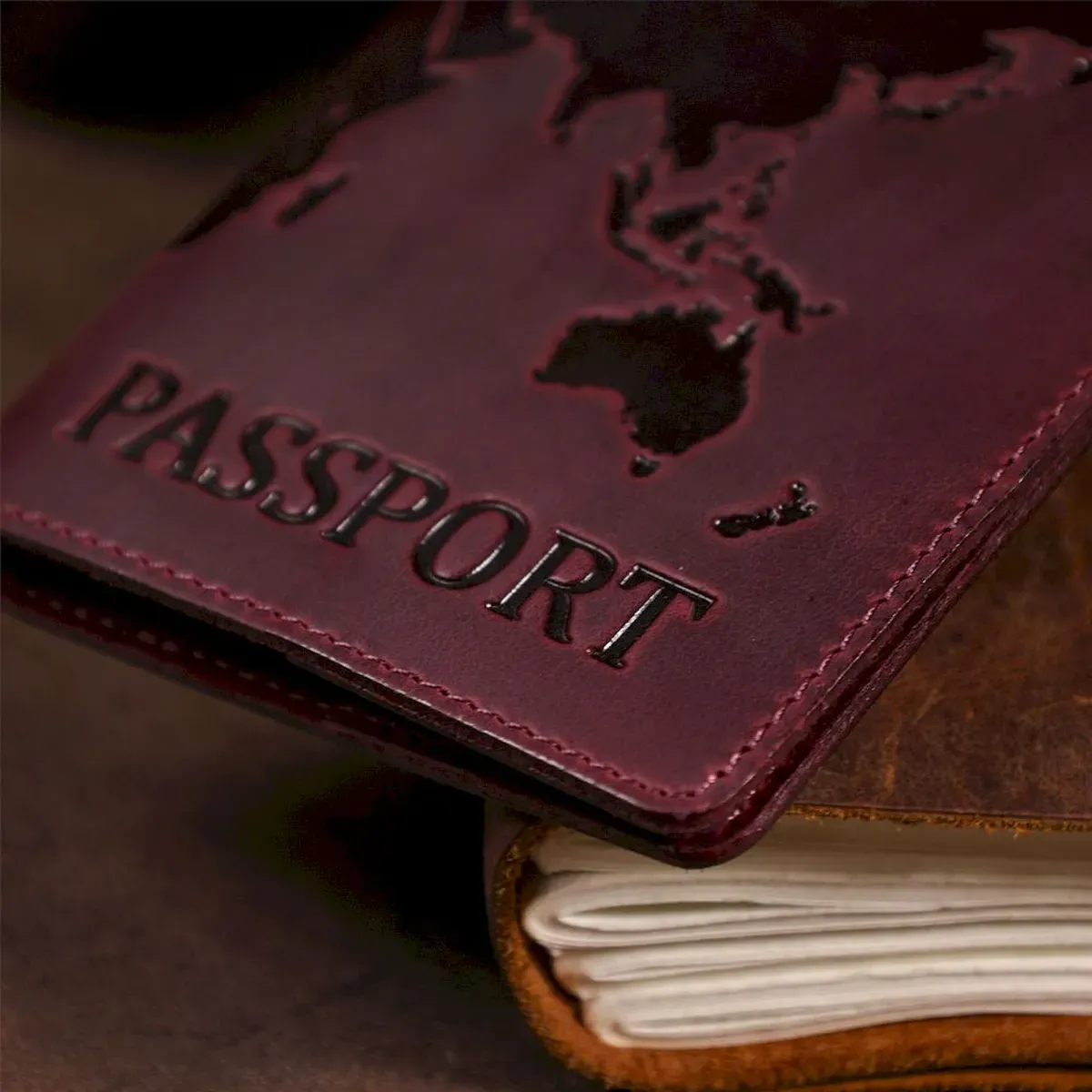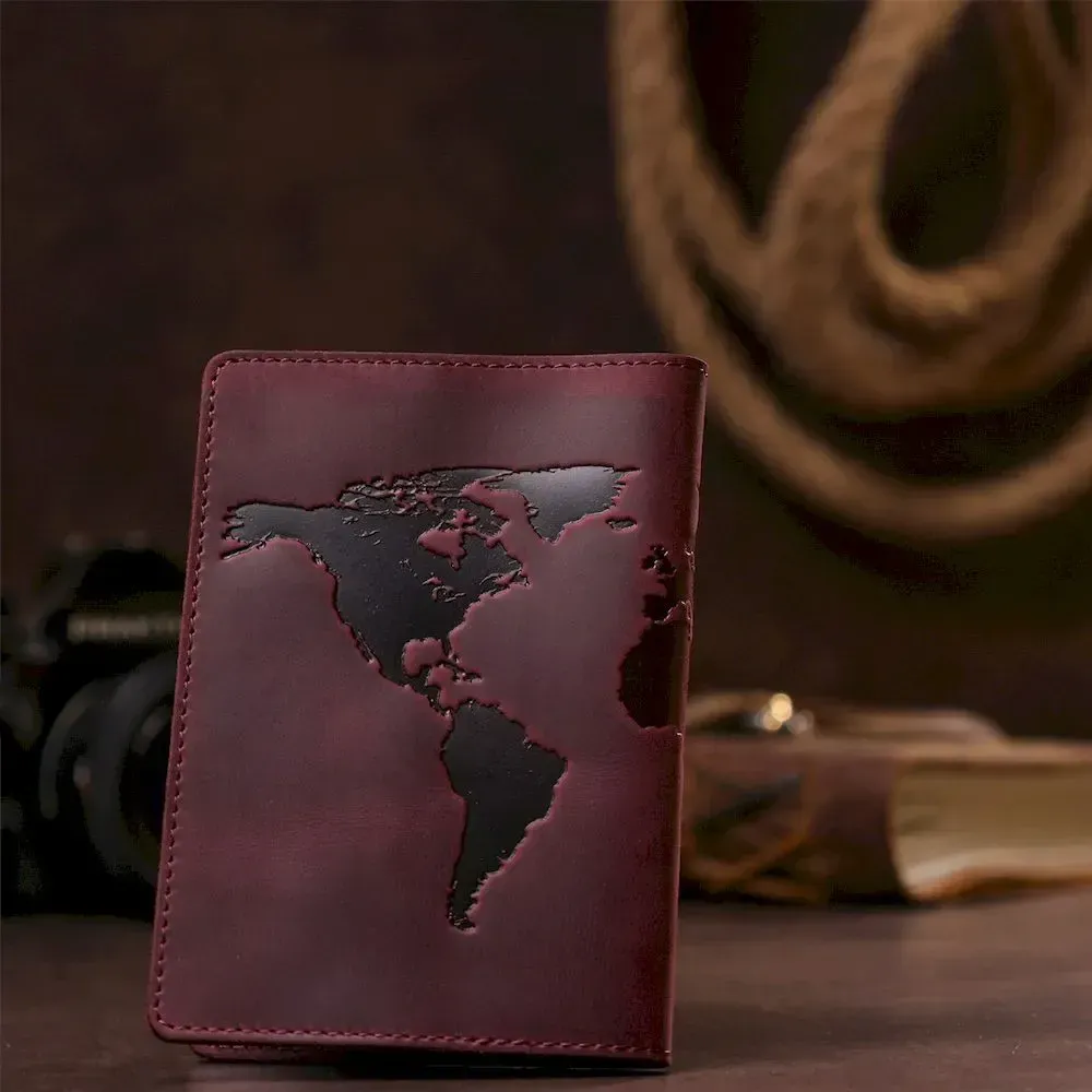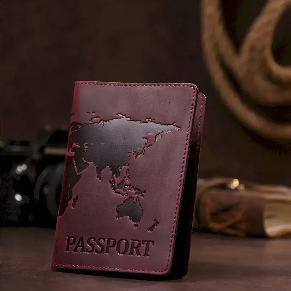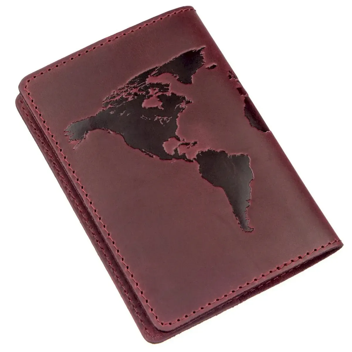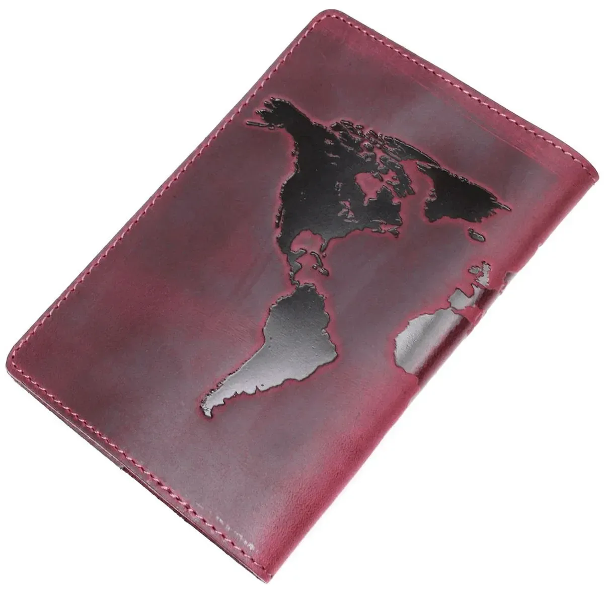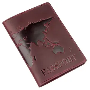 < br /> Зручна та стильна обкладинка на паспорт, сливового кольору із зображенням карти світу, виготовлена з високоякісної натуральної шкіри Crazy horse. Всередині тиснення Shvigel. Сучасний висококласний аксесуар, який стане ідеальним подарунком для близької людини з приводу.