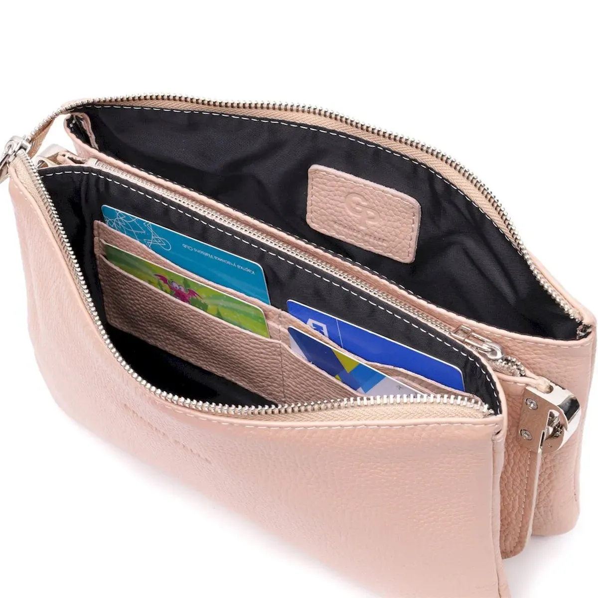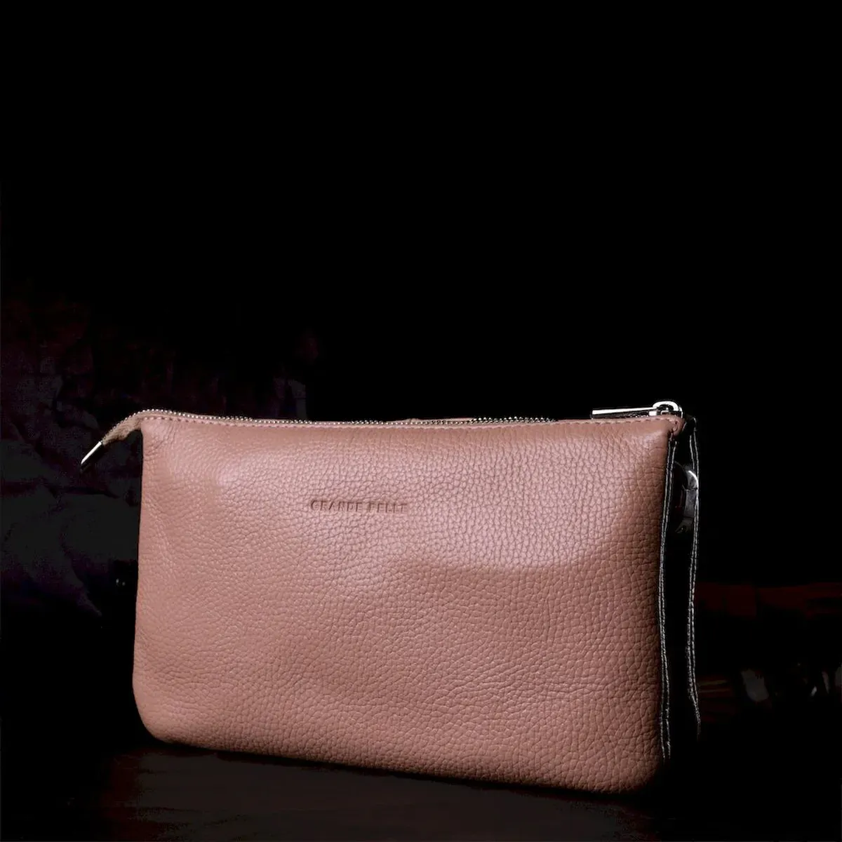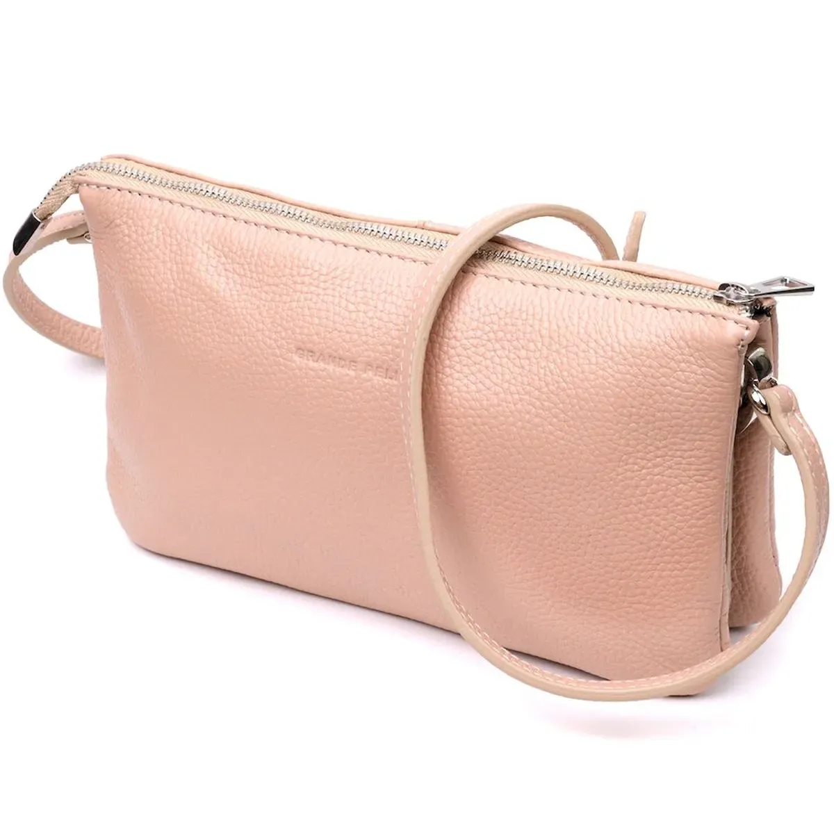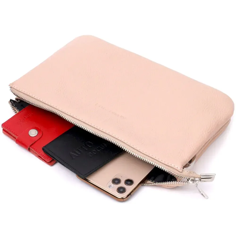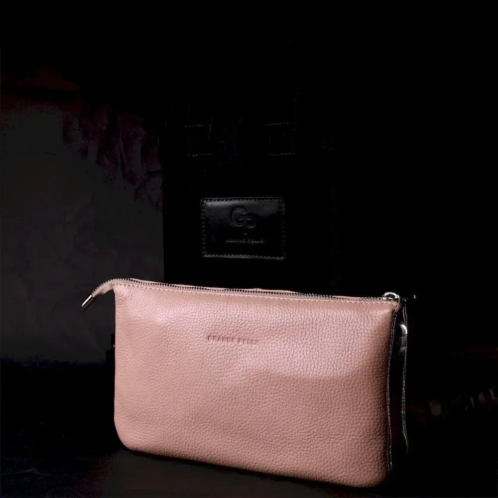 Чарівний жіночий клатч із натуральної зернистої шкіри GRANDE PELLE 11698 Пудровий