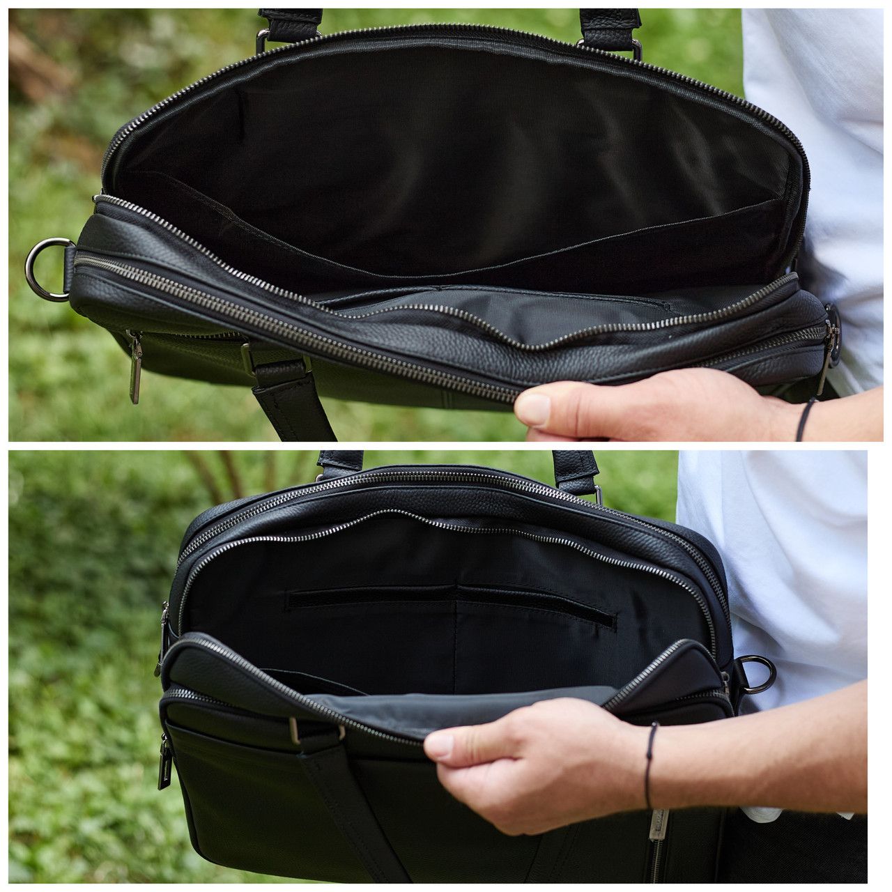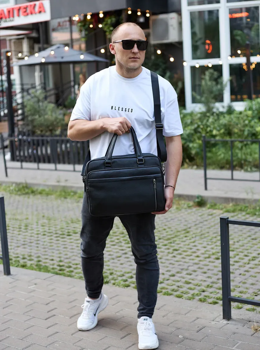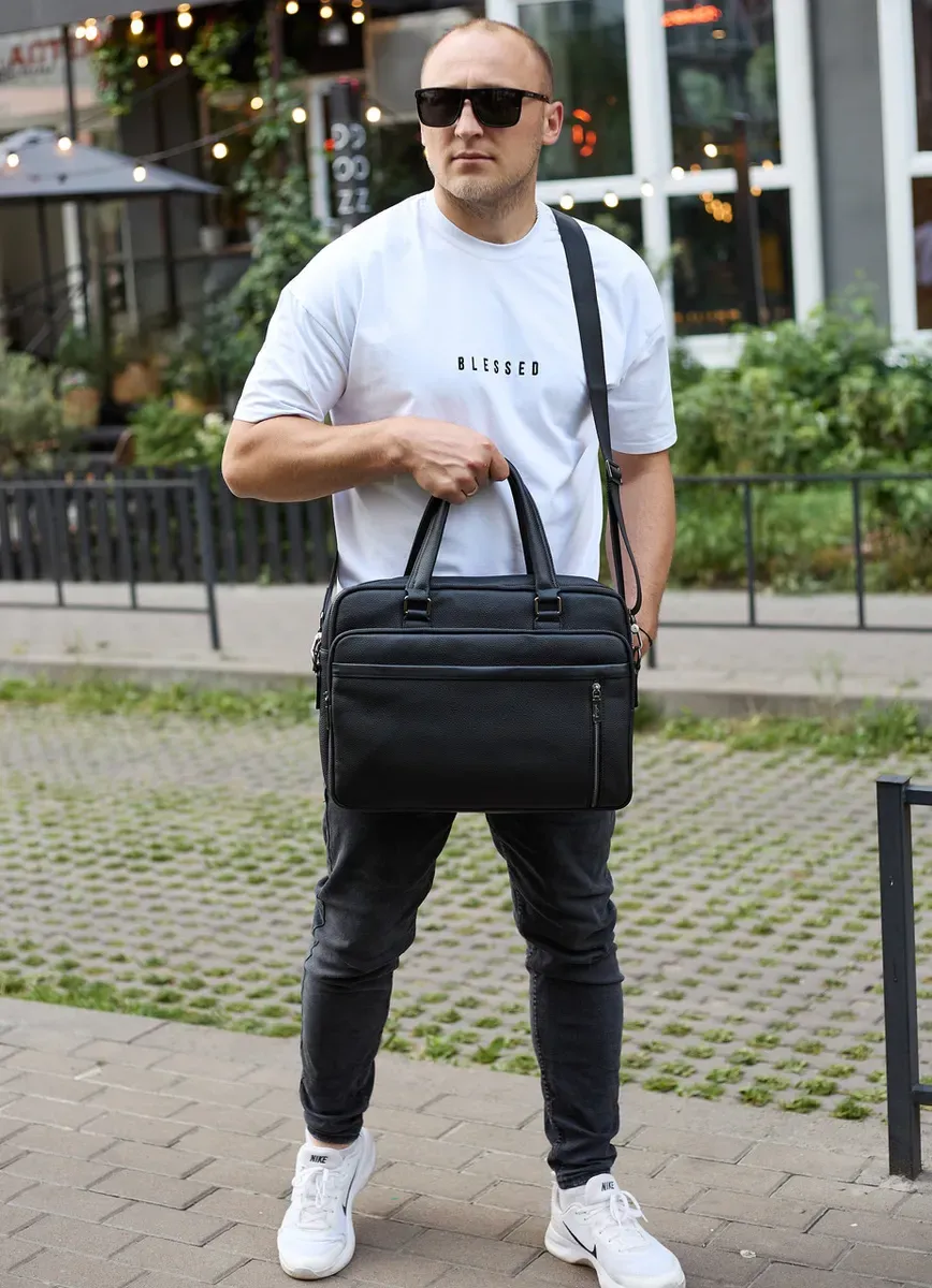 Офісна чоловіча сумка через плече 39х29х10, шкіряний портфель-месенджер для бізнесу, чорний