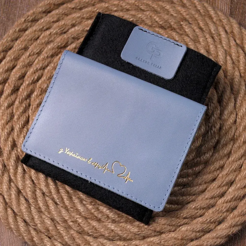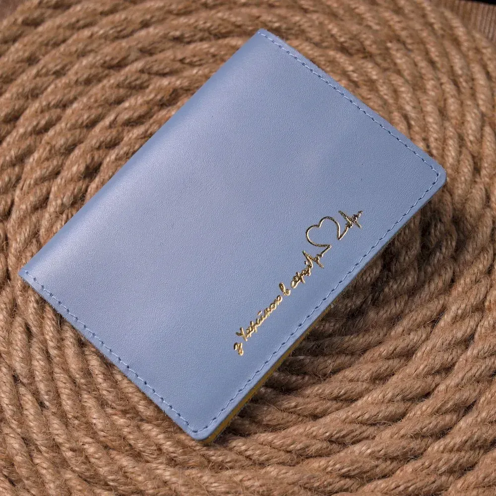 Патріотична шкіряна обкладинка на паспорт, у комбінації двох кольорів жовтого та блакитного з золотистим написом “З Україною в сердці”. Виріб пошитий із якісної гладкої шкіри, з високими показниками зносостійкості. Особливістю шкіряної обкладинки є те, що вона надійно захищає документ від пошкоджень та має довгий термін служби. Виріб без застібки, упакований у фірмовий чохол із фетру. Шкіряна обкладинка на паспорт стане чудовим подарунком на будь-яке свято.