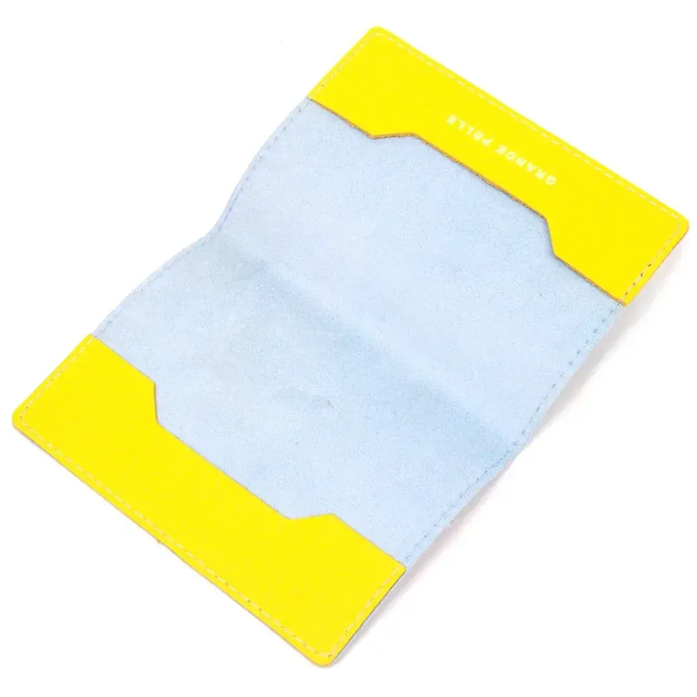 Оригінальна шкіряна обкладинка на паспорт комбі двох кольорів Серце GRANDE PELLE 16729 Жовто-блакитна
