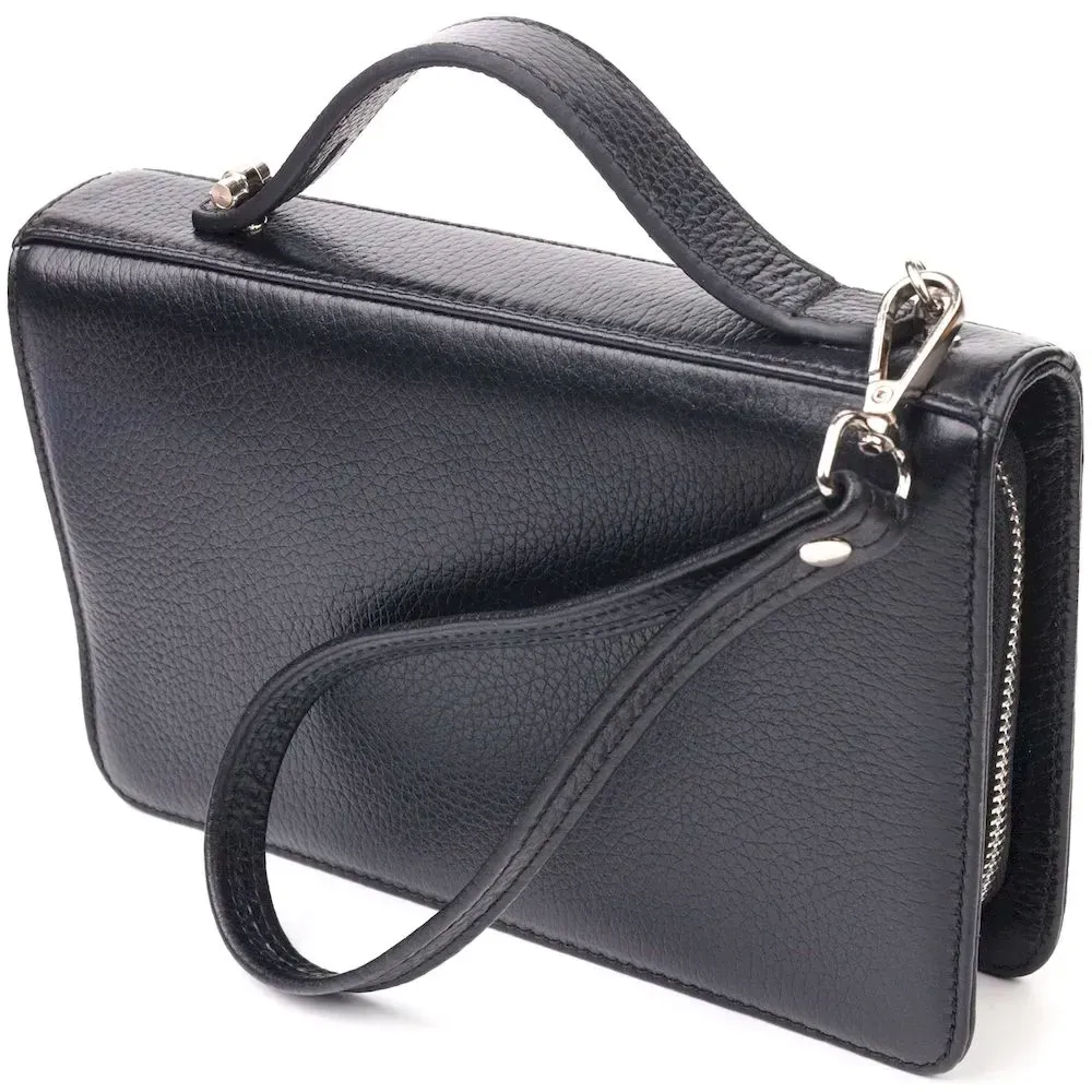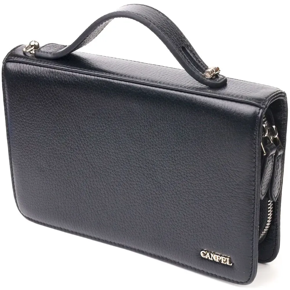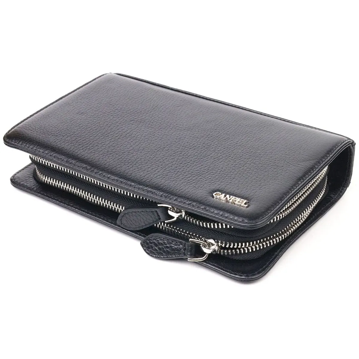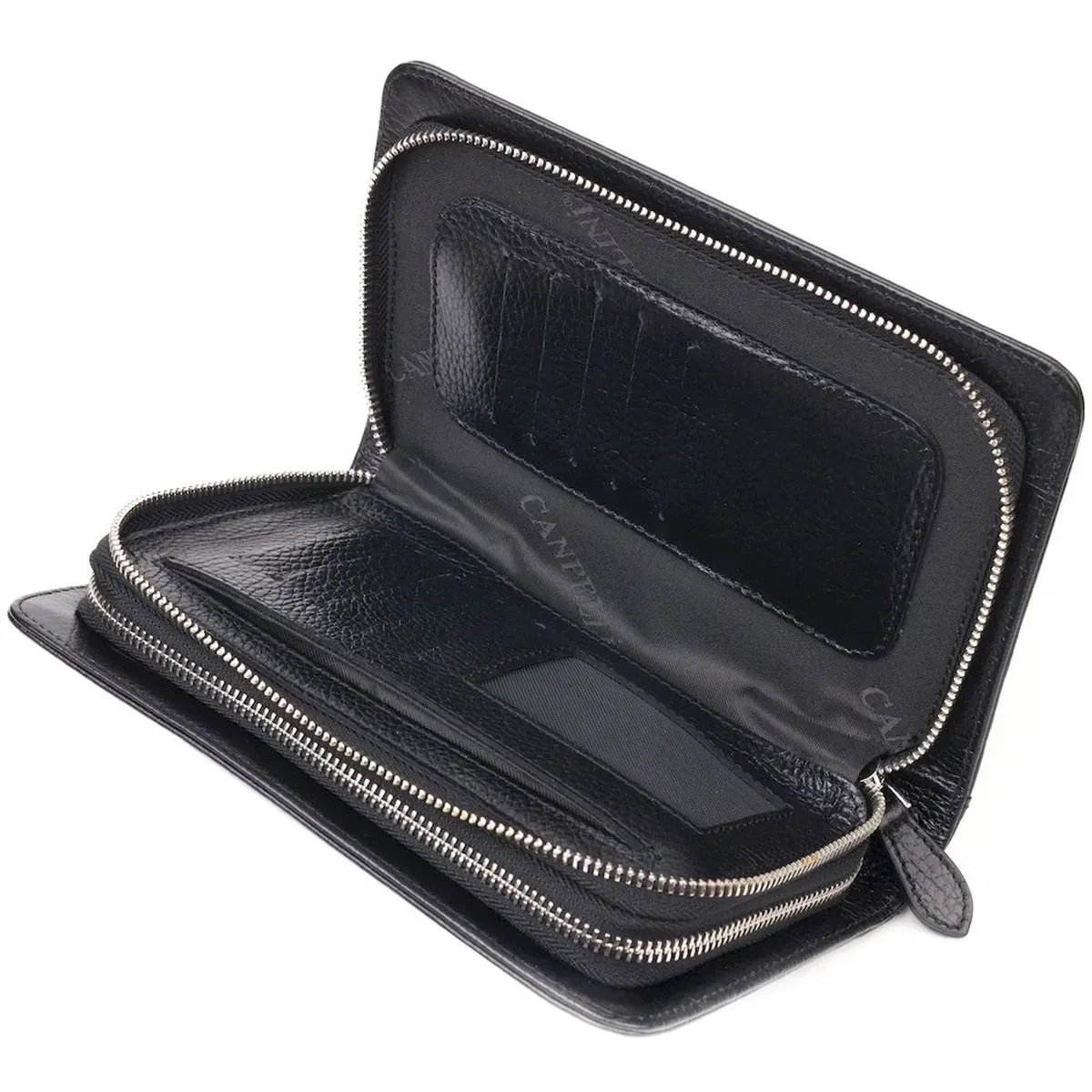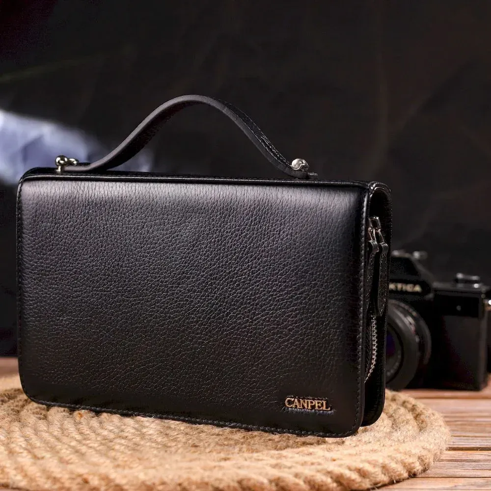 Оригінальна чоловіча барсетка на два відділення з натуральної зернистої шкіри CANPELLINI 21567 Чорна