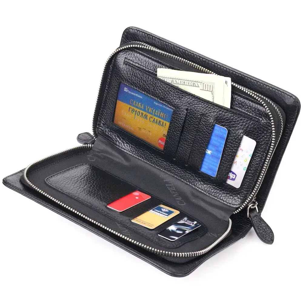 Стильний клатч із натуральної зернистої шкіри. Відмінно сидить у руці, на зовнішній стороні, у правому кутку розташований металевий логотип виробника. Клатч має оптимальний функціонал, всі кишеньки оптимально продумані для Вашої зручності. Шкіряна барсетка стане чудовим подарунком для будь-якого чоловіка.